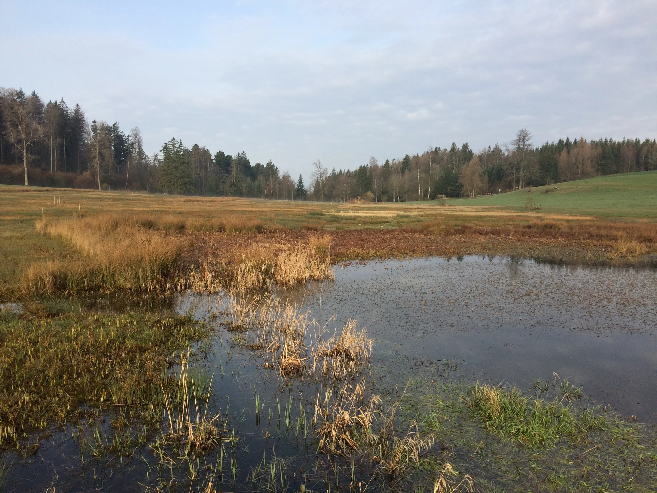 Kaum hat das warme Wetter der letzten Tage die dünne Eisschicht auf dem kleinen Teich in der Mulde zwischen Hinter und Vorder Guldenen zum Verschwinden gebracht, haben dort über Nacht sieben Enten Quartier genommen. Am Himmel kreisen zwei Rotmilane; sie tauschen beim Jagen mittels ihres unverkennbaren Rufes geheime Nachrichten aus.