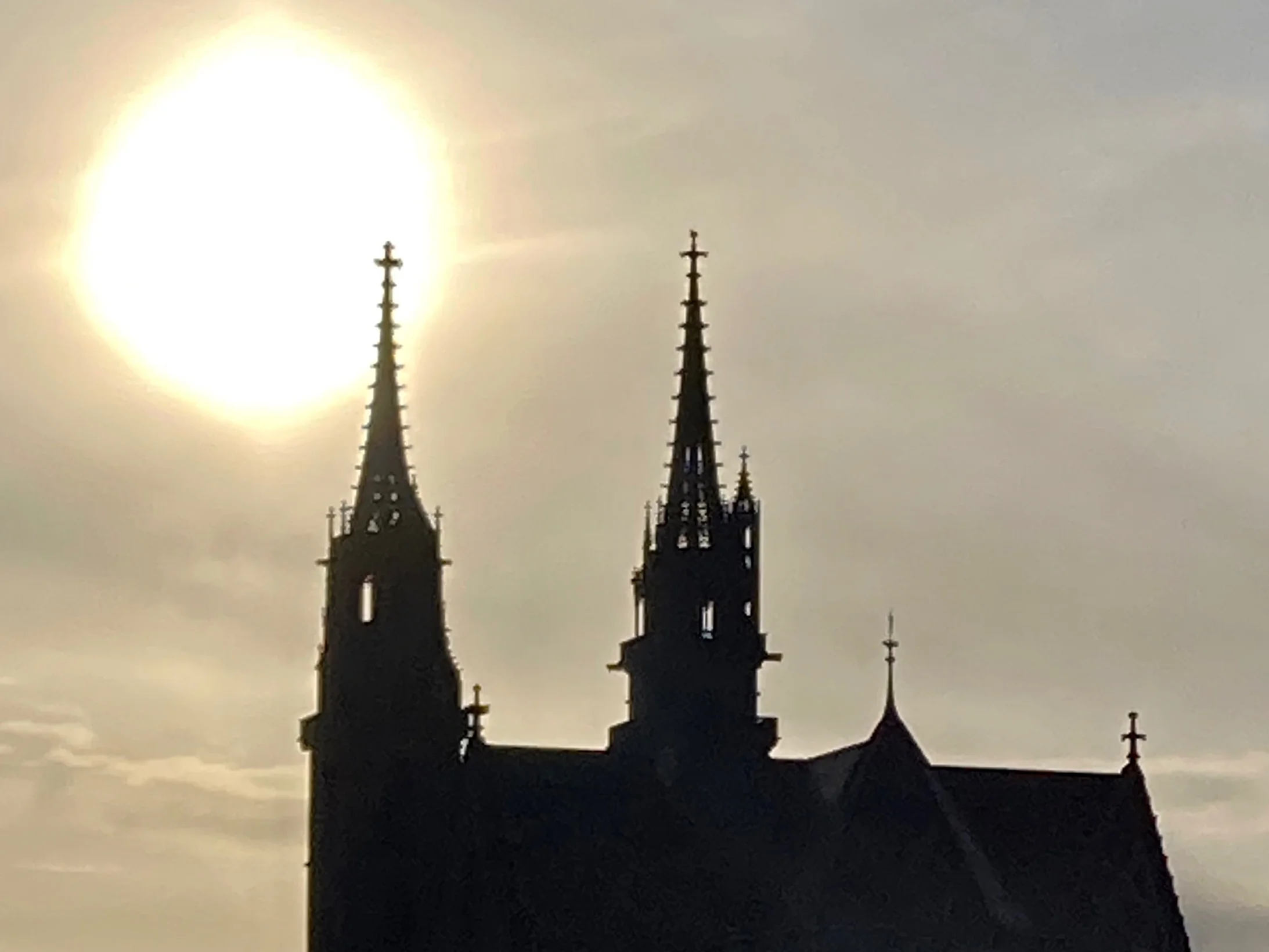 «Gut gemacht», rufe ich dem Kapitän im Stillen zu. Ich gehe weiter zum Kleinbasler Ufer und spüre am sich verändernden Licht, dass die Sonne sich hinter die Wolken zurückgezogen hat. Bevor sie untergeht, zeigt sie sich noch einmal als milchige Scheibe vor der Silhouette der beiden Münstertürme, dann ist sie weg, und die Temperatur sinkt spürbar. Dem Rheinweg entlang gehe ich flussabwärts.