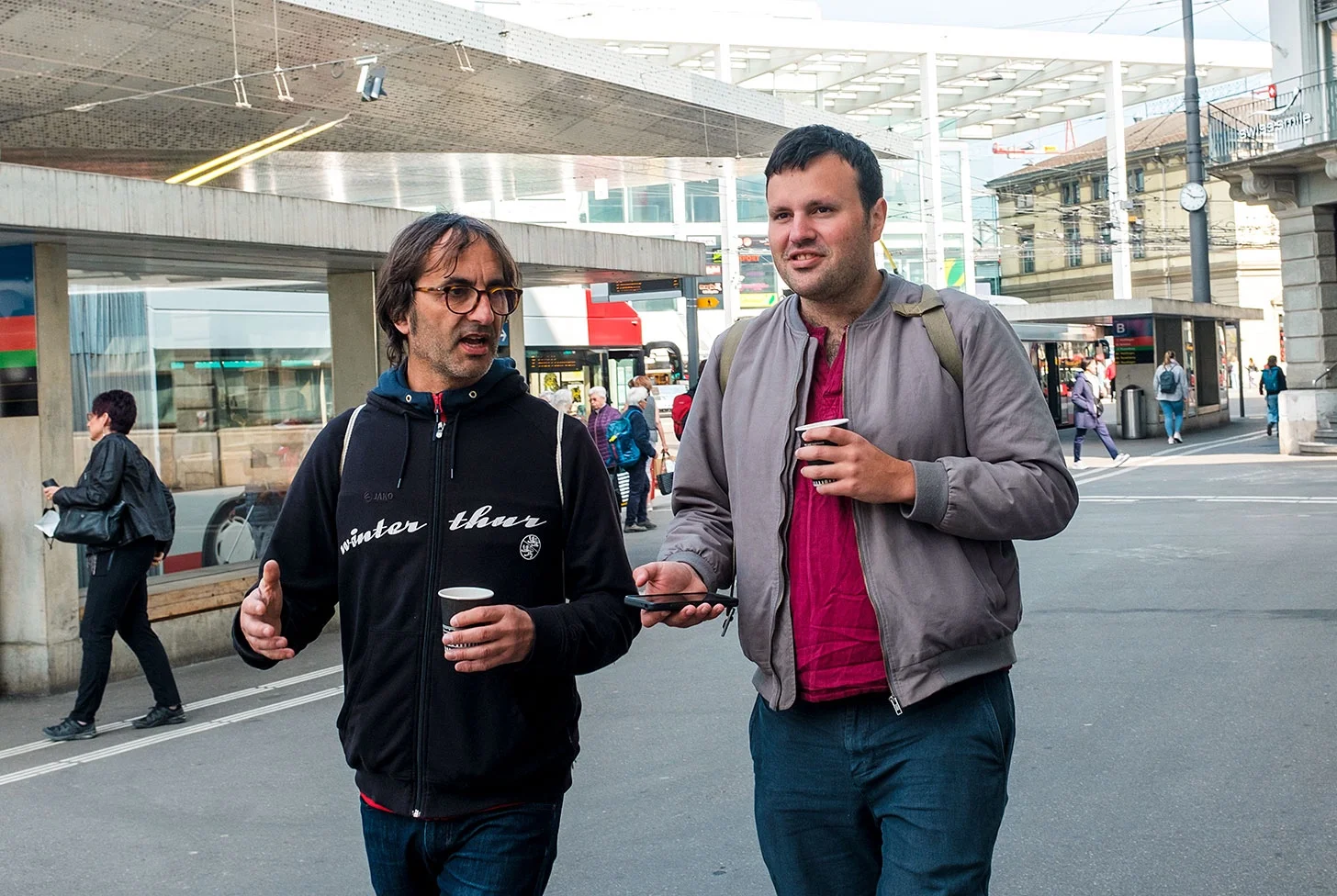 Andreas Mösli und Benjamin von Wyl auf dem Rundgang durch Winterthur (Foto: Medienwoche)