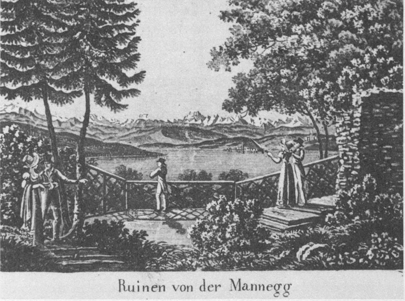 Die Familie Manesse und ihre Burg auf einer Seitenrippe des Albis haben mich seit meiner Jugend fasziniert. Zu meiner Konfirmation hatte mir damals mein Götti die Gesammelten Werke von Gottfried Keller geschenkt. Sie stehen noch immer, die grünen Lederrücken vom Alter abgenützt wie meine eigene Haut, in meiner Bibliothek. Keller hat der Familie Manesse und ihrer Burg Manegg in den Zürcher Novellen zwei Geschichten gewidmet, neben der bereits erwähnten «Der Narr auf Manegg» die Geschichte «Hadlaub» (2).