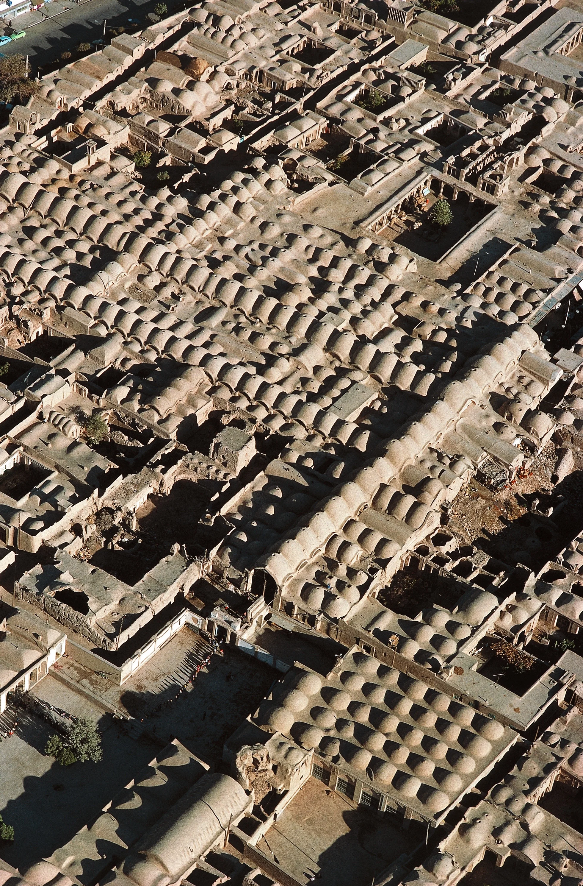 Zentralpersien, und da namentlich die Provinz Fars, die persischen Stammlande, ist verkuppelt. Bei der Bedachung öffentlicher Gebäude und der Marktstrassen, des Basars, herrschen Tonnengewölbe und Kuppeln vor. Der Marktflecken Sirjan ist ein Beispiel von ungezählten. Iraner sind Meister des Kuppelbaus. Sie setzen je nach Bedarf ein Gewölbe auf jeden Grundriss, rund oder vieleckig. Dabei verfahren sie ohne ein hölzernes Lehrgerüst. Sie bauen klassische Kragkuppeln – jede Lage Ziegel ragt etwas weiter in den Innenraum vor, der sich so nach oben verjüngt. Die Lehm-Kalk-Ziegel sind gebrannt oder lediglich sonnengetrocknet. Die Kuppeln dämpfen im Basar den Lärm und kühlen. Fenster im Scheitel spenden das schmeichelnde Licht, das Basarbesucher zum Kaufen verführt.
