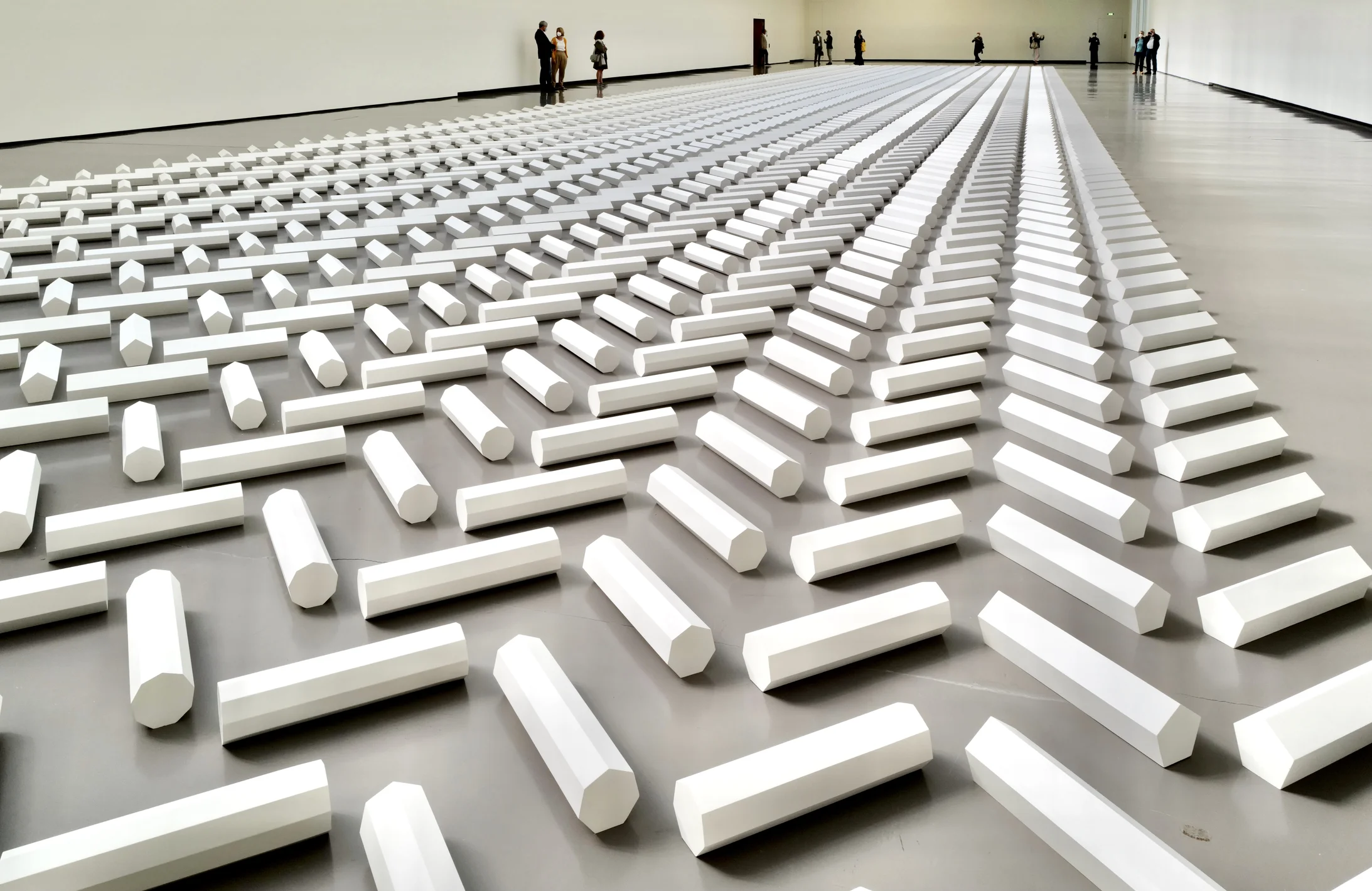 Drei Jahrzehnte nach der Erstpräsentation hat «The 2000 Sculpture» zwar die Assoziation mit dem elektrisierend-mythischen Jahr 2000 verloren, nicht aber ihre ästhetische Erhabenheit. Man steht wie gebannt vor den 2000 gipsernen Barren und vermag sie zwar wie die Töne einer musikalischen Komposition als Einzelphänomene zu erkennen, erlebt sie aber vor allem als Ganzheit, die unendlich mehr ist als die Summe ihrer Einzelteile. Die Barren sind vom Tageslicht mal weich, mal hart modelliert, sie werfen Schatten und spiegeln sich gar im grauen Boden. Jeder Wechsel des Betrachtungsstandorts ergibt neue perspektivische Beziehungen, neue visuelle Effekte.