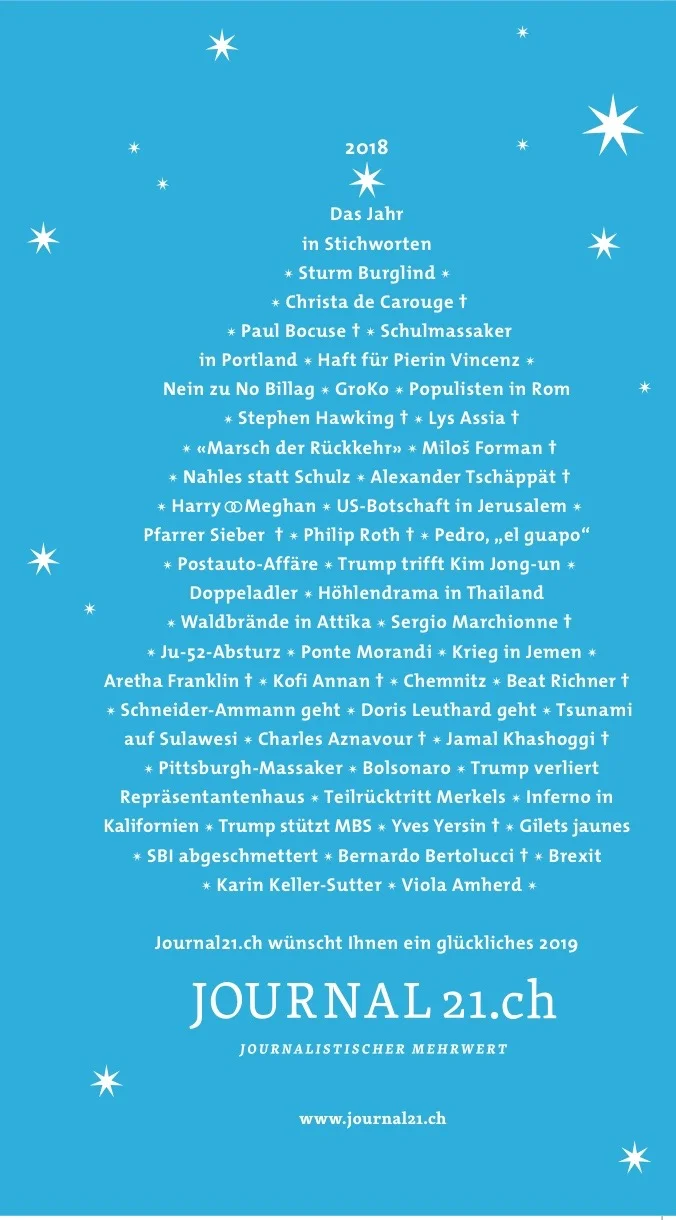 Journal21.ch wünscht all seinen Leserinnen und Lesern schöne Weihnachten und ein gutes neues Jahr.