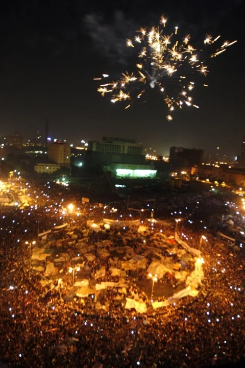 Unter diesen Umständen zwang die Armee Mubarak, seinen endgültigen Rücktritt zu erklären und die Stadt Kairo zu verlassen. Er tat es am späten Nachmittag des Freitags. Sein Rücktritt wurde durch Vizepräsident Sulaiman am Fernsehen mitgeteilt. Sulaiman erklärte auch, der Präsident habe das oberste Kommando der Streitkräfte beauftragt, die »Angelegenheiten des Landes zu verwalten«. Die Armeespitzen übernahmen folglich im gleichen Zug mit dem Rücktritt Mubaraks die Macht über das Land. Zwei Stunden später bestätigten sie dies direkt durch eines ihrer Communiques und versprachen, sie würden bald über die konkreten Massnahmen informieren, die sie vorsähen.