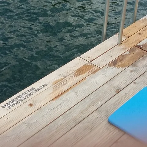 Weithin sichtbares Zeichen der Biennale ist ein ästhetisch bestechendes, über einen Holzsteg erreichbares zweistöckiges Holzfloss auf dem Zürichsee beim Bellevue. Entworfen und gebaut vom Studio Tom Emerson, ETH Zürich, nennt es sich «Pavillon of Reflections», was umgangssprachlich Beiz, Aussichtsplattform und begehbares, aber nicht benutzbares Schwimmbad heissen würde. Die Umkleidekabinen, Haartrockner und Leitern ins Wasser ergeben in Kombination mit dem Badeverbot einen bürokratischen Irrwitz.