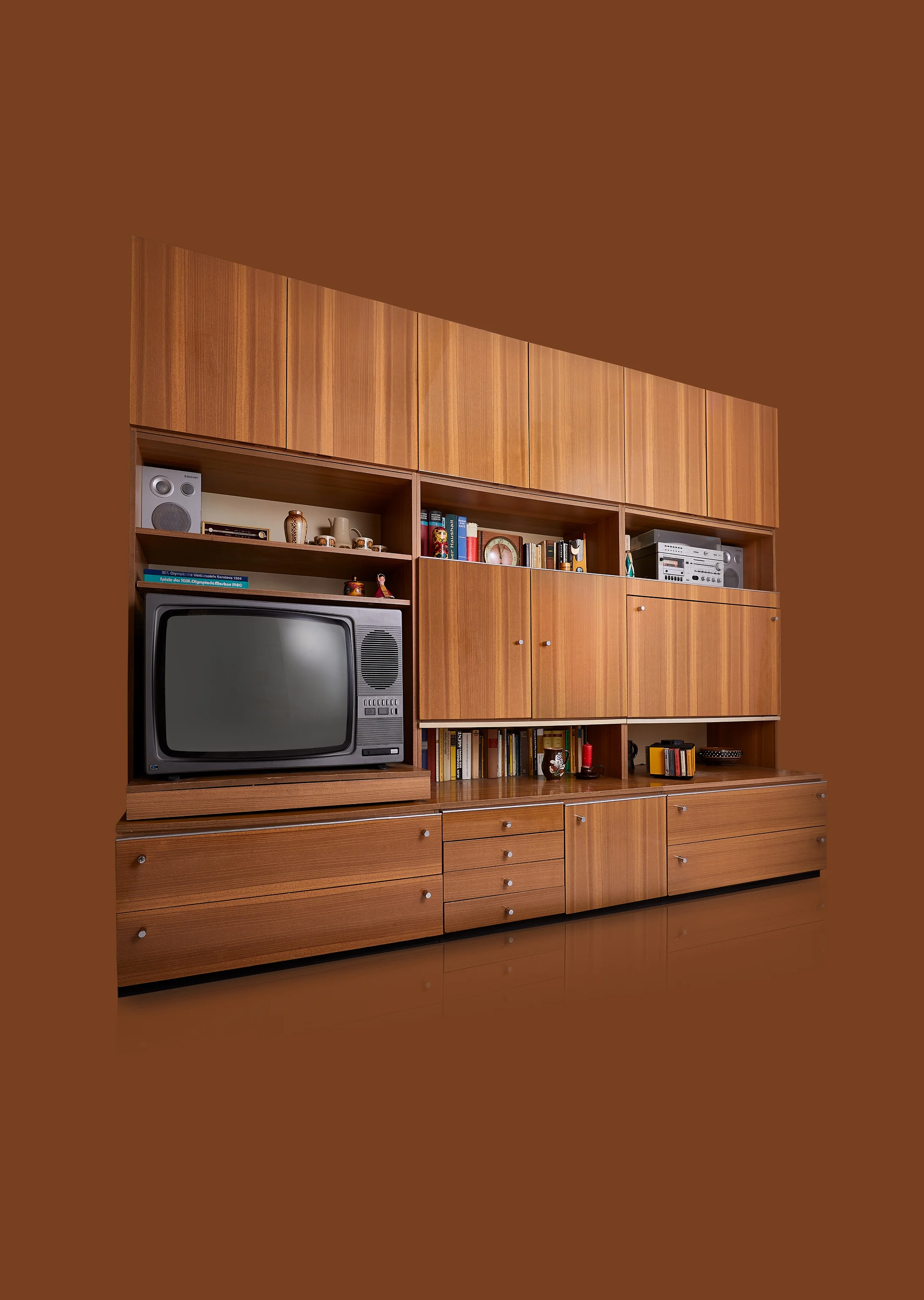 In beiden Teilen Deutschlands wurden Schrankwände zunehmend beliebter. In der DDR allerdings war der Weg zur eigenen Schrankwand lang und beschwerlich. Das Thema der Möbelherstellung war lange Zeit vernachlässigt worden. Erst 1971, als Erich Honecker zum neuen Mann an der Spitze der DDR wurde, beschloss der 8. Parteitag der SED, die Produktion von Konsumgütern auszuweiten. Dazu gehörten auch Möbel. Dafür wurde das Programm «Carat» im «Möbelkombinat Berlin-Karlshorst» aufgelegt. Es handelte sich um ein Baukastensystem mit verschiedenen Elementen. Die Masse der Elemente orientierten sich an den einheitlichen Grundrissen der Plattenbauten. So kam es, dass die Wohnungen «sehr uniform aussahen».