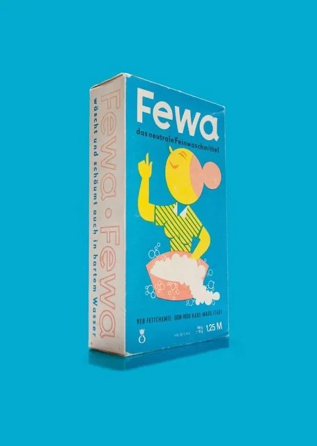 Das Thema Waschen lenkt den Blick nicht nur auf Waschmittel, sondern auch darauf, wie bei vielen Paaren der Haushalt organisiert war. Gut lässt sich das an der Werbung für das Waschmittel «Fewa» beobachten. Zunächst einmal ist die Figur auf der Schachtel zu beachten. Es handelt sich dabei um die Waschfrau «Johanna», die übrigens keine Erfindung der DDR-Werbung war. Werber sind schon in der Vorkriegszeit auf diese Figur gekommen und sie wurde auch in der Bundesrepublik verwendet. In der DDR wiederum stand sie als Püppchen in Drogerien.