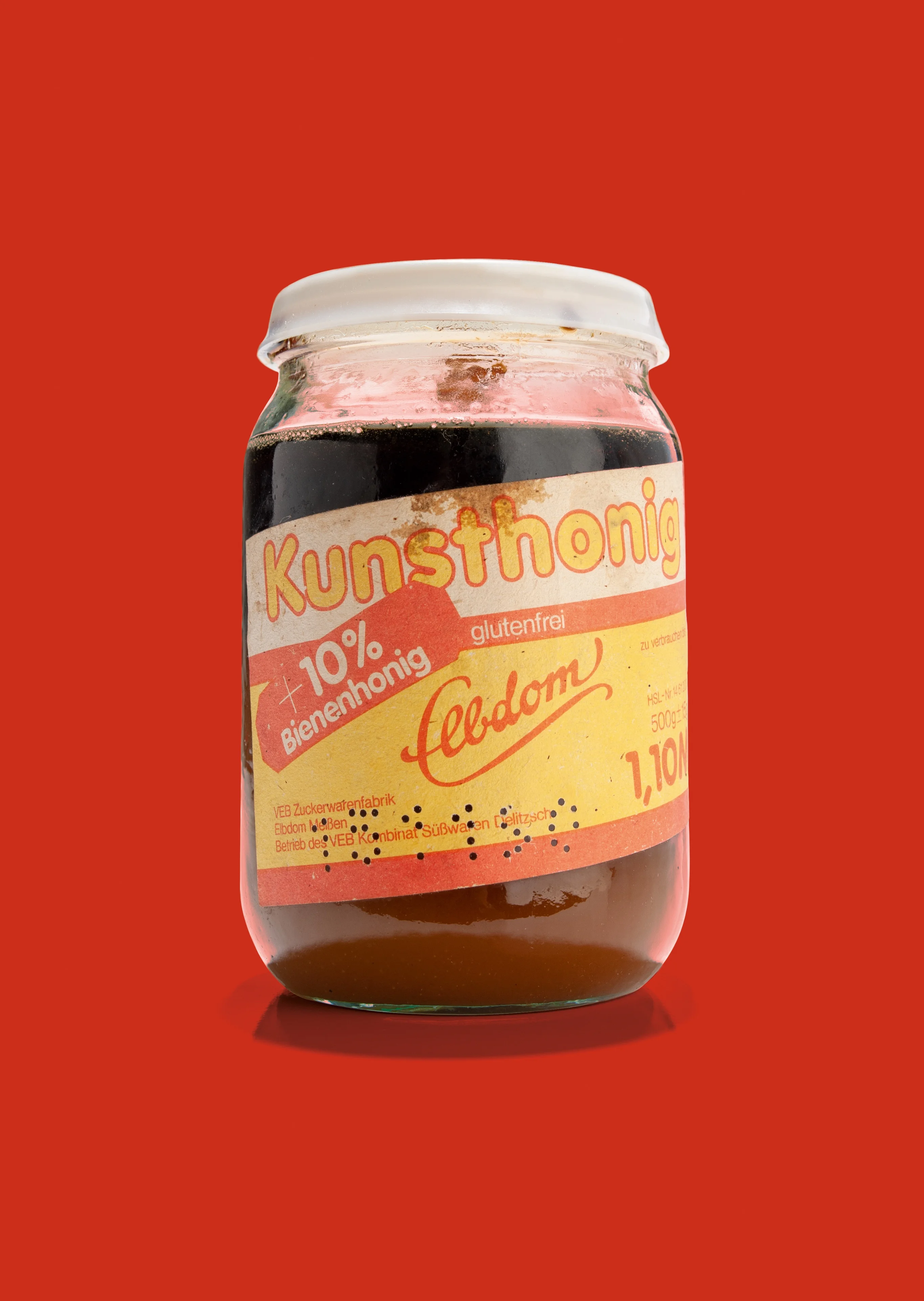 Ein anderes Produkt, das es im Westen wohl nur in der unmittelbaren Nachkriegszeit gegeben hat, ist der Kunsthonig. Im Begleittext zum «Kunsthonig Elbdom» heisst es: «Rein chemisch handelt es sich um eine konzentrierte Zuckerlösung, die auf 90 Grad erhitzt und dann mit Säure versetzt wird, wobei Glukose und Fruktose entstehen. Mit einem Wasseranteil von 20 Prozent und etwas Aroma, vielleicht sogar mit einem Anteil echtem Honig, entsteht eine dickflüssige Masse, die mit ein bisschen gutem Willen im Geschmack an Honig erinnert.» Ganz Pfiffige sollen den Kunsthonig sogar in Heimarbeit hergestellt haben.