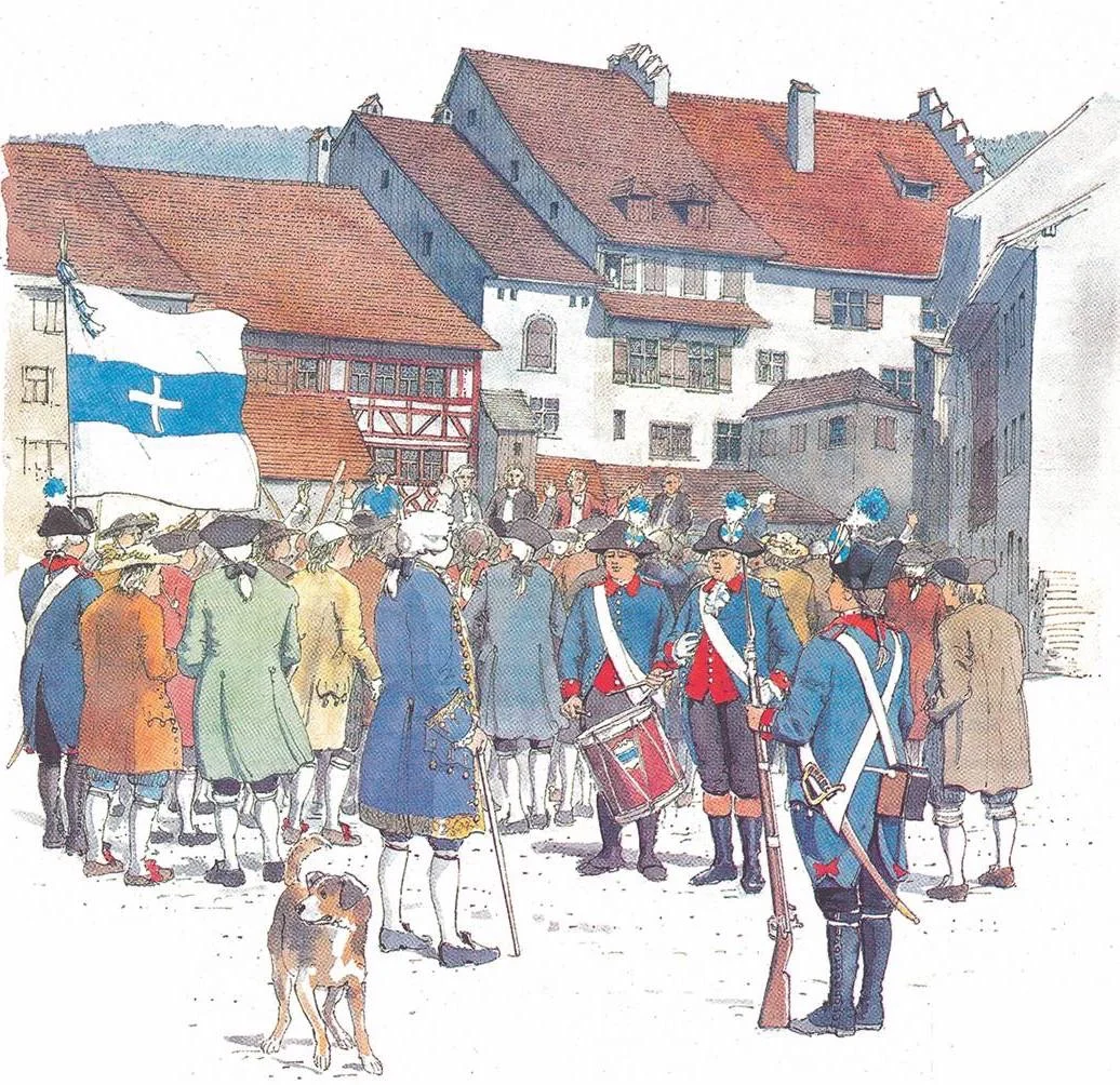Die neue Freiheit ist von kurzer Dauer, die Schweiz in Teilen ein besetztes Land und nicht mehr autonom. Noch stehen nicht alle Kantone hinter der neuen helvetischen Regierung in Aarau. Im April 1798 erlässt General Schauenburg, Kommandant der «Armée d’Hélvétie», eine unzweideutige Proklamation: Annahme der helvetischen Einheitsverfassung oder Okkupation durch französische Soldaten.