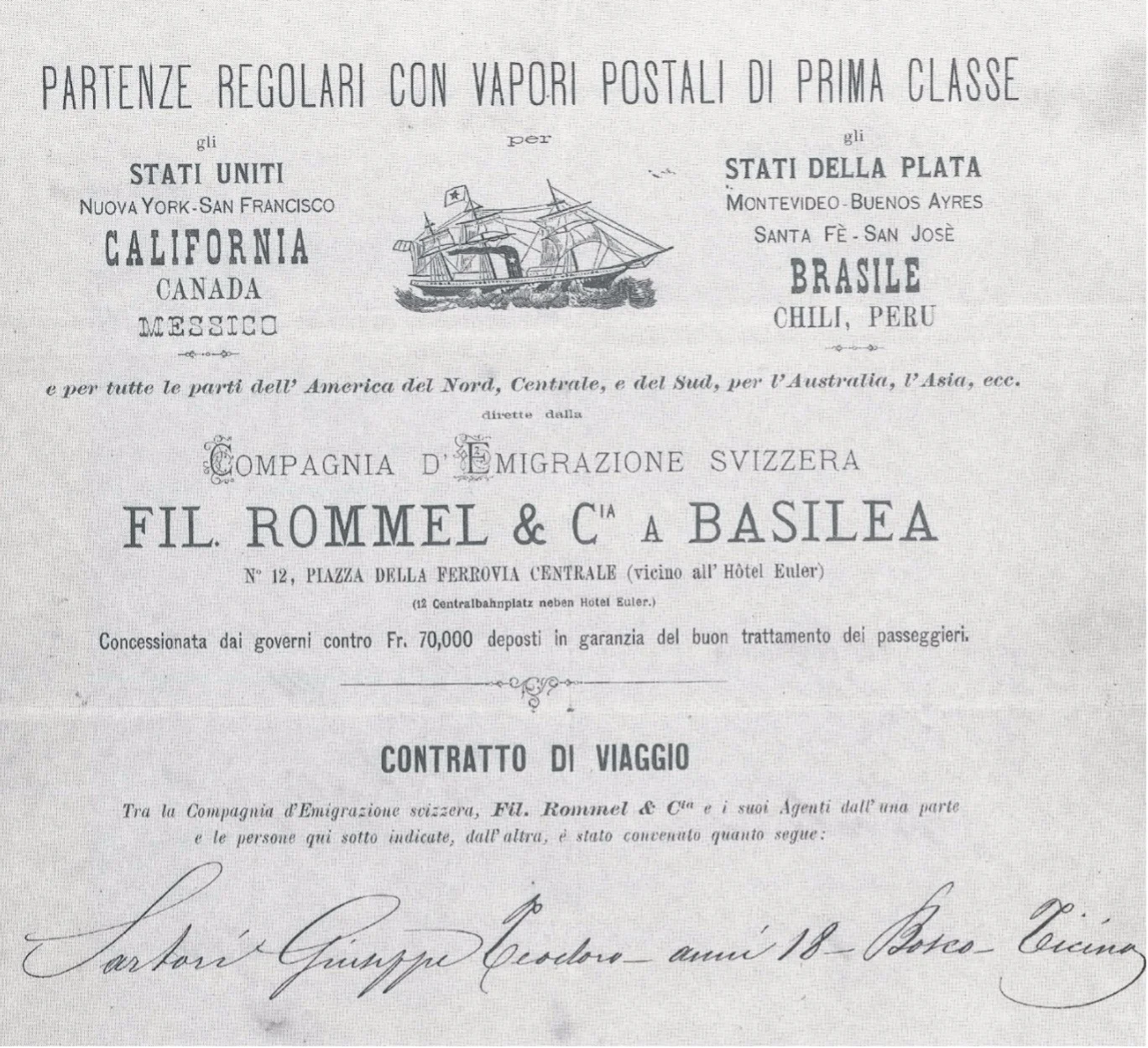 «Auf und davon!», so heisst eine beliebte SRF-Sendung. Sie porträtiert Personen, die auswandern und in der Fremde einen neuen Anfang wagen. Ein anderes, ein besseres Leben beginnen: Davon träumen viele und verlassen ihre Heimat. Das gilt heute, das galt damals. Lange Zeit war die Schweiz ein Auswandererland. Armut, Hunger und Not trieben viele in die Emigration – als Zuckerbäcker, als Kaminfeger, als Stallknecht.[1] Allein zwischen 1850 und dem Zweiten Weltkrieg kehrten rund 30’000 Tessiner ihren kargen Bergtälern den Rücken und wanderten nach Kalifornien aus. «In America voglio andare», hiess die Devise. «Auf und davon!»