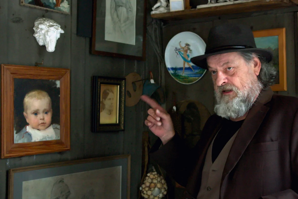 In diesem Haus und Atelier situiert Heinz Bütler seinen neuen Künstlerfilm. Er hat ein Grüppchen von Anker-Fans zusammengerufen, das sich hier auf eine Begegnung mit dem Inser Maler einlassen will.