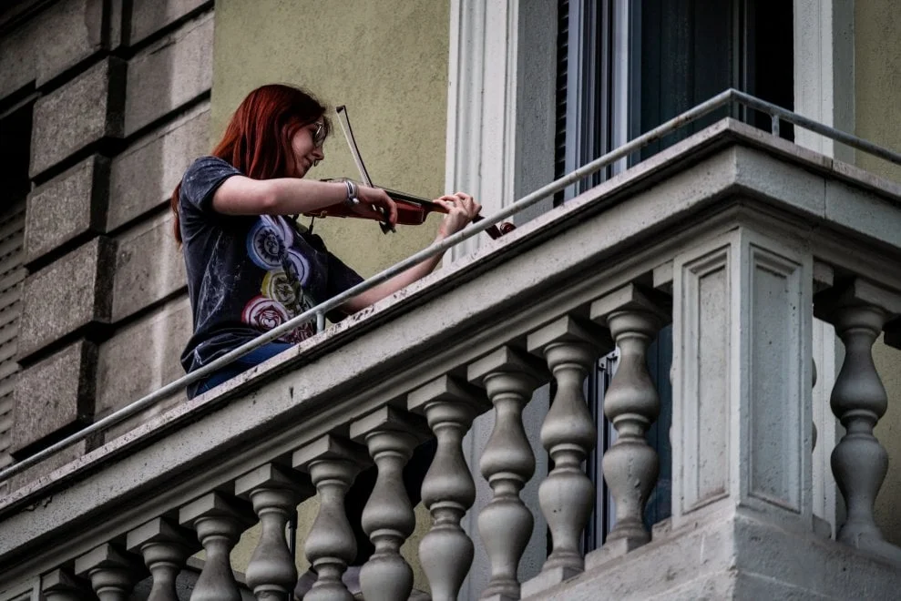 Sie singen alte neapolitanische Lieder und machen sich Mut. Die Opernsängerin Laura Baldassari singt an ihrem offenen Fenster in Mailand ganze Arien.