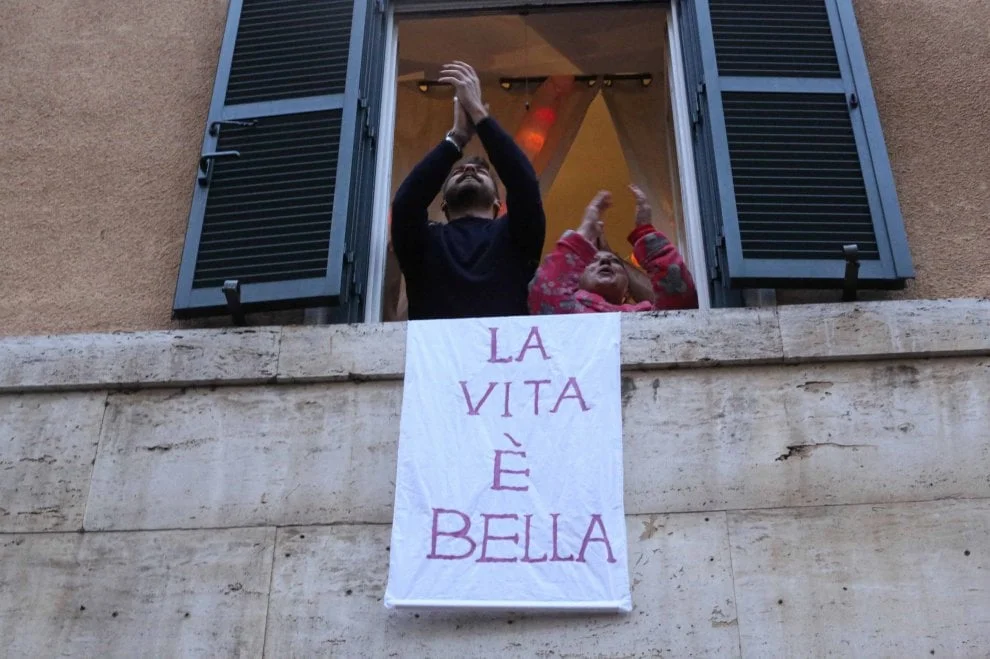 Auch in Rom hängen die Menschen an den Fenstern, rufen sich zu, singen gemeinsam.
