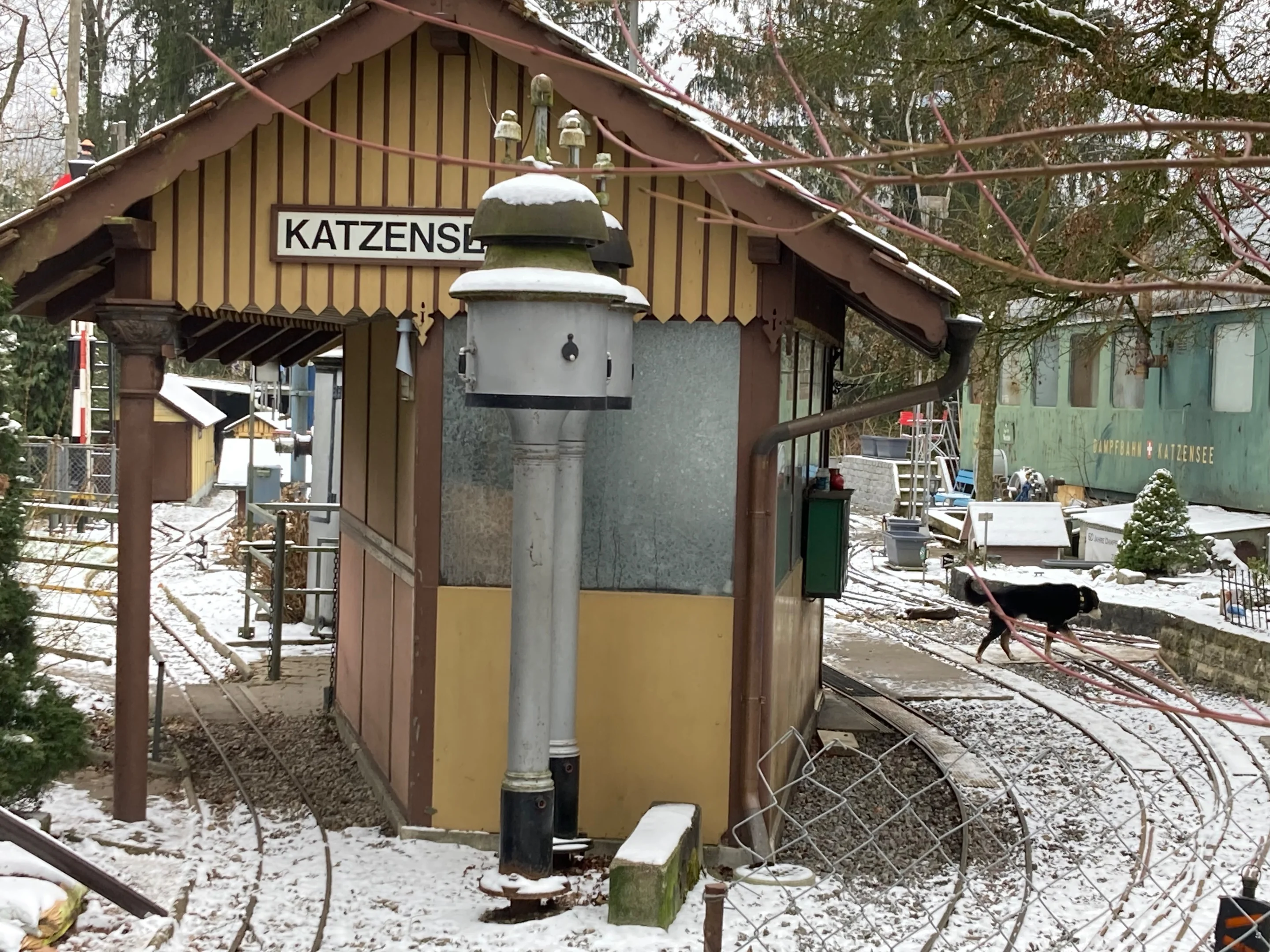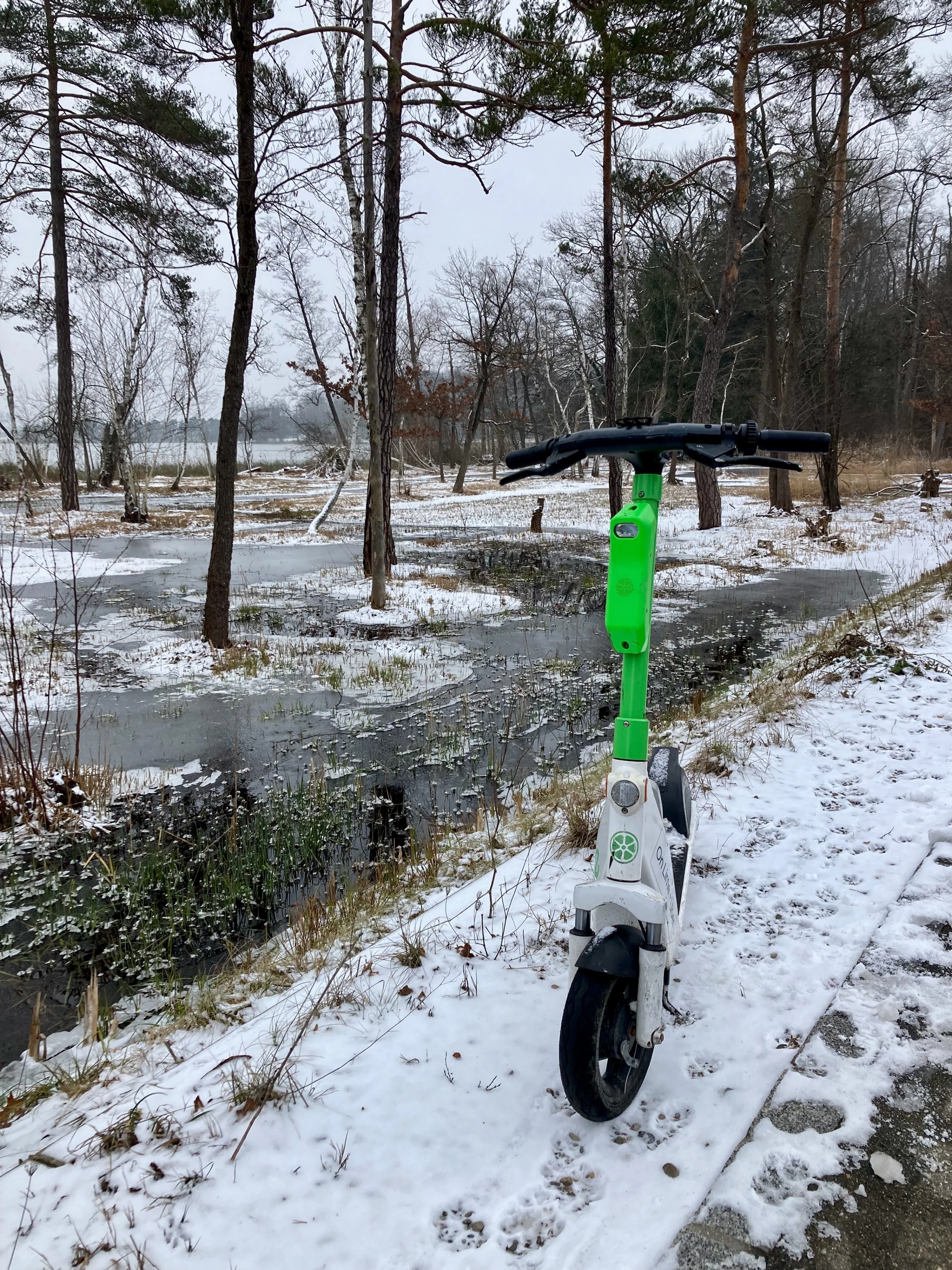 Ich überquere die Staatsstrasse und gehe zwischen den alten Gebäuden des Guts Katzensee hindurch. Wo früher Pferde logierten, gibt es heute ein Seminarzentrum. Der Kanton wird einen Teil des vor hundert Jahren aufgeschütteten Geländes wieder in ein Ried verwandeln. Wer den Chatzensee umrunden will (eine Stunde), kann nicht anders als jetzt einige hundert Meter in südöstlicher Richtung entlang der lärmigen Strasse zu gehen, bis der Wanderweg zum See abzweigt. Ich befinde mich jetzt im Naturschutzgebiet, da sollte das Abfallwesen nicht weit sein. In einiger Entfernung sehe ich ein grünes Wesen, doch beim Näherkommen entpuppt sich dieses als Elektro-Trottinett. Ob sich wohl das Abfallwesen damit in die Wildnis gerettet hat? Als ich zwischen dem See und dem Restaurant Katzensee entlanggehe, sehe ich ein Tier davonhuschen. Auch hier Fehlarm: Es handelt sich um einen Hund, der zwischen den verlassenen Geleisen der Dampfbahn Katzensee umherirrt.