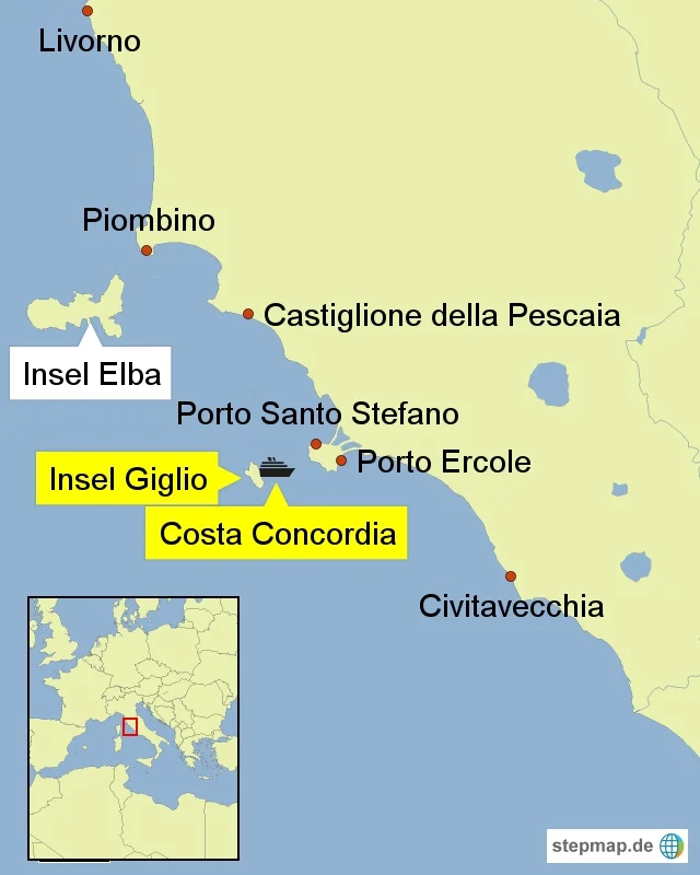 Die Aktion wurde von italienischen Fernsehstationen live übertragen. 350 Journalisten befanden sich auf Giglio.