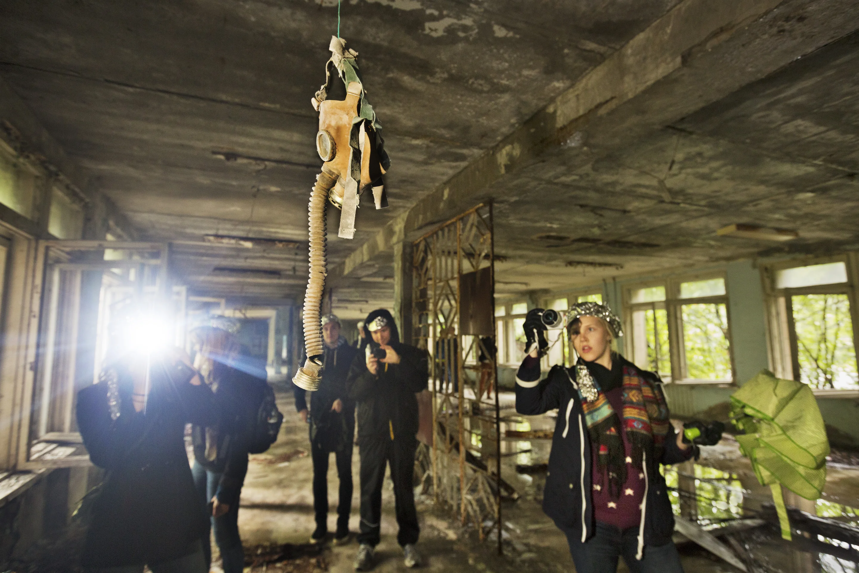 Gerd Ludwig hat Touristen fotografiert, die sich möglichst nahe an den verstrahlten Reaktorblock heran drängen, die verwüstete Räume betreten und in dem verwaisten kleinen Vergnügungspark posieren, der kurz vor der Katastrophe aufgebaut worden war und seinen Betrieb nicht mehr aufnahm. Touristen, wie man sie an allen anderen Touristenorten dieser Welt ganz genauso antrifft.