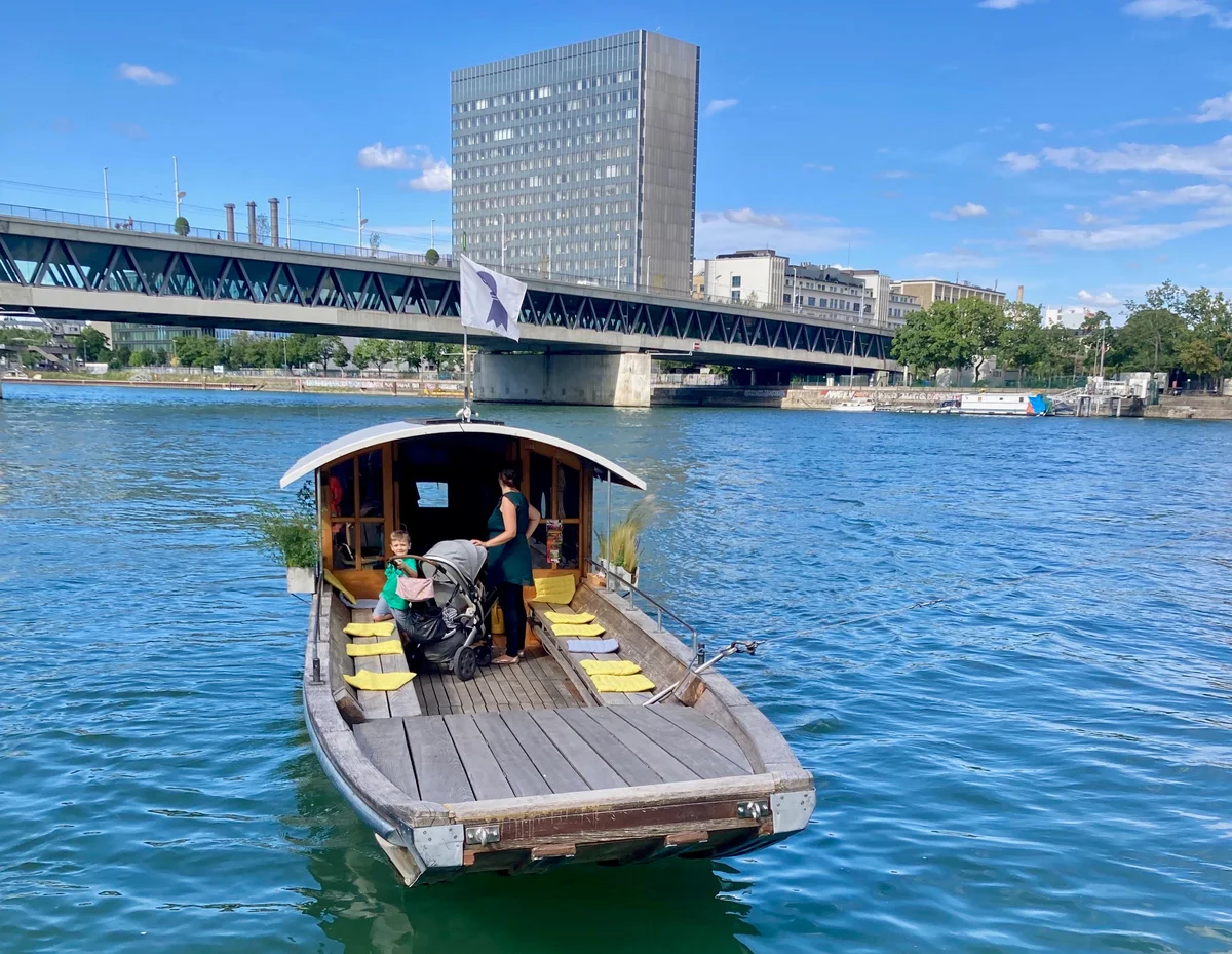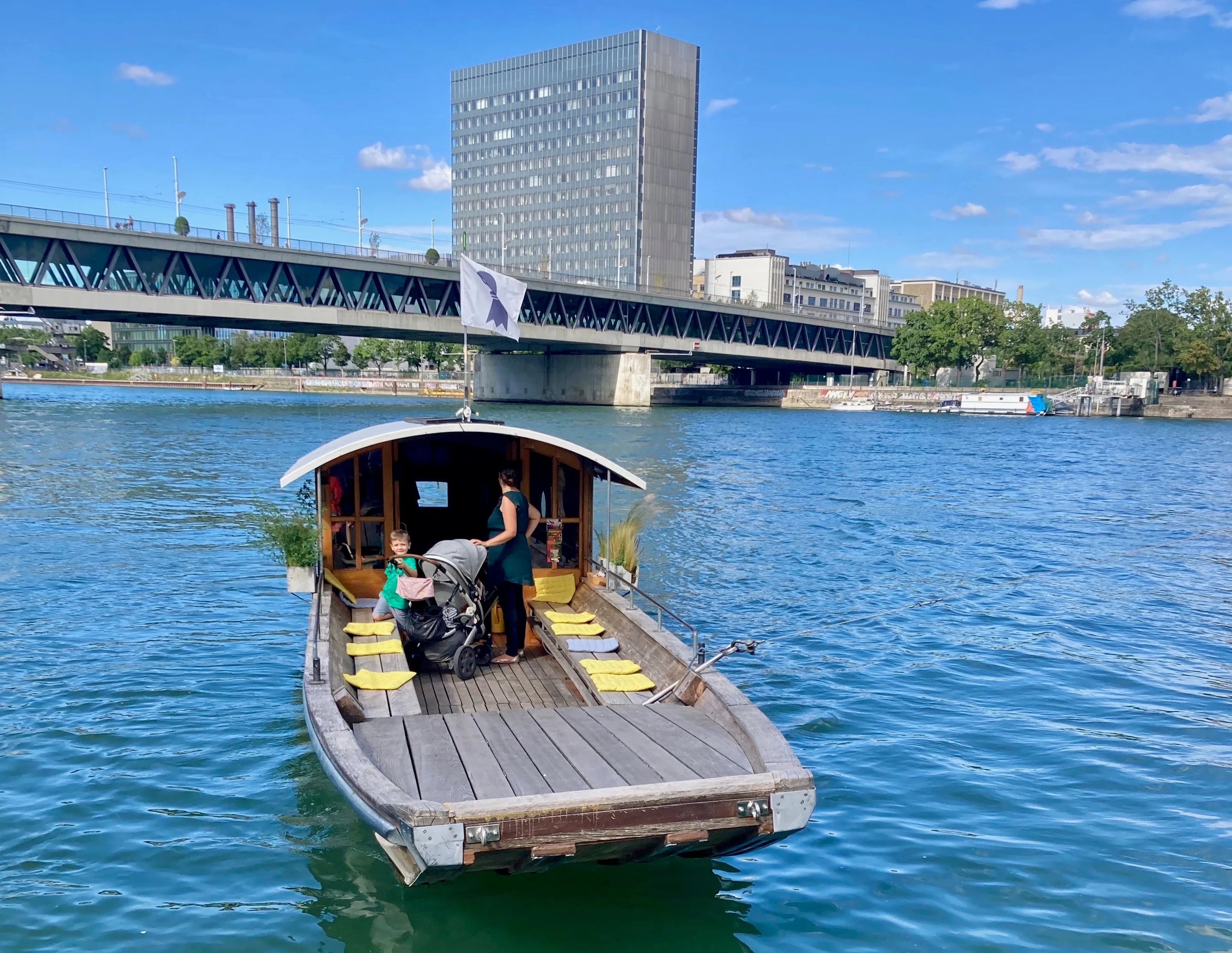 Auf dem Weg dorthin hätte sich eigentlich die Iselin’sche Dreirosen- bzw. Kulturbrücke angeboten, aber ganz in der Nähe gibt es eine weit romantischere Flussquerung, die Ueli Fähre. Die Zeit ans andere Ufer reichte gerade, um mit «em Fährima» über die Einzigartigkeiten von Kanal- und Flussschifffahrten zu plaudern – wir beide hatten einst auf einer Linssen Yacht Europas Wasserstrassen befahren –, und schon war die Fahrt vorbei und wir gingen auf dem Quai rheinabwärts zum Holzpark.