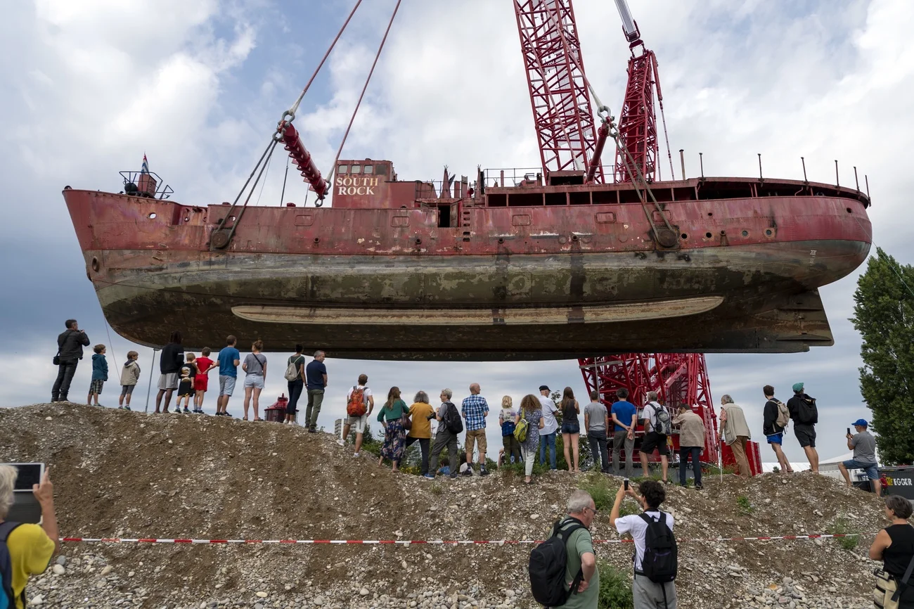 Wie es dieses Schiff nach Basel und schliesslich auf das Gelände des Holzparks schaffte, erzählt ein kurzes Video, das ich allen wärmstens empfehlen kann. Dort werden Sie zum Beispiel erfahren, dass die Gannet mit ihren 600 Tonnen Gewicht – beim Kauf hatte man sie auf weniger als 200 Tonnen geschätzt – das schwerste Objekt ist, das je in Europa von einem einzigen Pneukran gehoben worden ist.