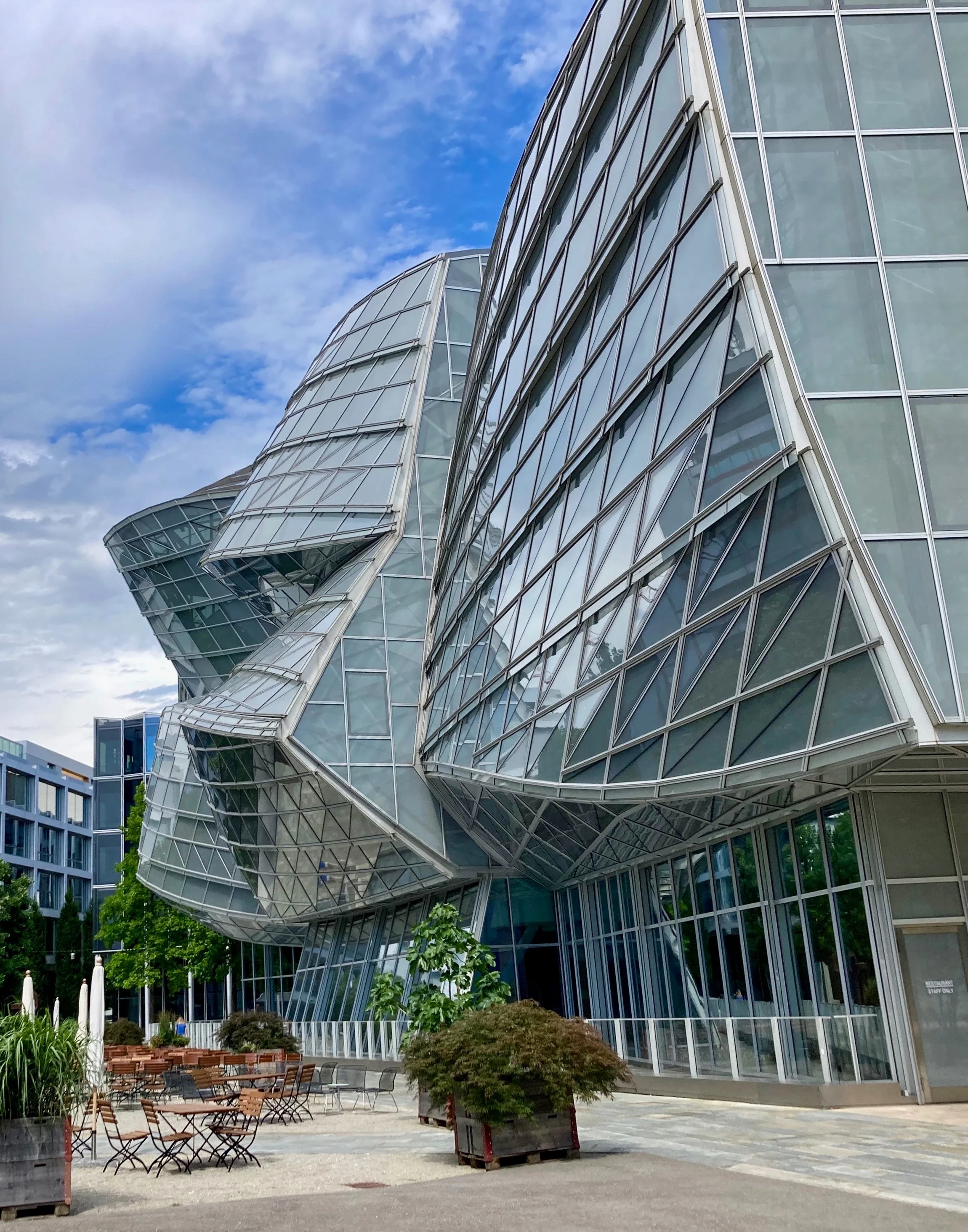 Keine Regel ohne Ausnahme: Frank Gehrys Gebäude, in dem die Personalabteilung untergebracht ist, revoltiert als Einziges gegen den rechten Winkel und setzt einen architektonischen Kontrapunkt, welcher Lampugnanis Konzept nicht aufhebt, sondern verstärkt.