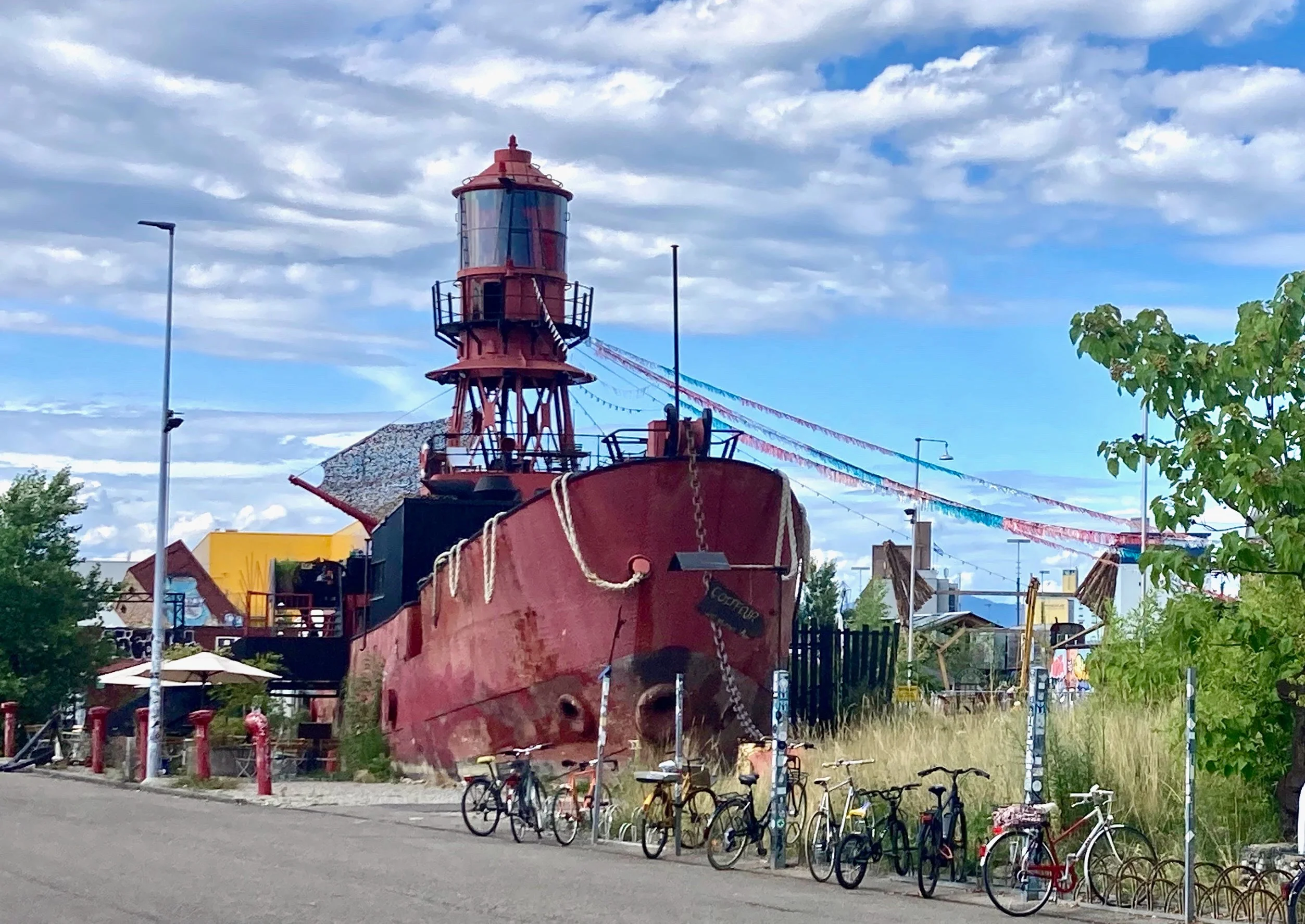 Doch ein Problem blieb: Wie sollte man in den provisorischen Holzbauten (laute) Veranstaltungen organisieren, ohne mit der Wohnbevölkerung jenseits des Hafenbahnhofs in Konflikt zu geraten? – Im September 2019 hörten Katja und Tom von einem 1954 gebauten irischen Leuchtturmschiff, das ausser Dienst gesetzt worden war und zum Verkauf stand: die Gannet. – Es war wie eine Erlösung: Konzerte in einem Schiffsbauch – damit werden alle Lärmprobleme gelöst sein!