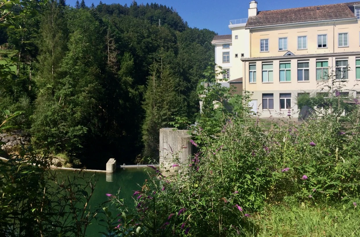 Unübersehbar thront beim sogenannten Trempel ein grosses, quer stehendes Fabrikgebäude auf einem Felsvorsprung. Auf einer Tafel lese ich die mahnenden Worte: „Wasser, das schon vorbeigeflossen ist, kann man nicht mehr nutzen.“ – Ob dies, das Wort „Wasser“ durch „Gelegenheit“ ersetzt, wohl das Motto der Bewohnerinnen und Bewohner dieser Talschaft ist?