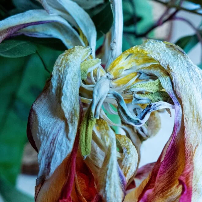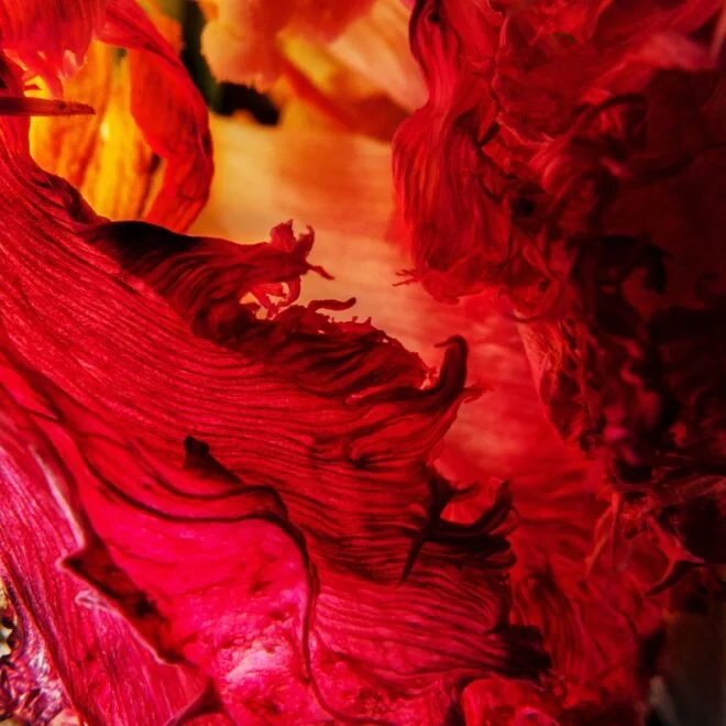 Noch nie hat man die Pflanzenwelt so gesehen wie hier. Es sind, wie es Bernd Stiegler von der Universität Konstanz bei der Eröffnung der Ausstellung beschreibt, «durch und durch barocke Bilder, die wuchern und sich winden, die Wachstum zeigen und Wildwuchs, die Fülle zelebrieren, die Farben feiern, die Formen ausloten, die Falten folgen. Es sind Bilder, die dem Wandel folgen, dem Moment, an dem Fülle in Verfall umkippt und die Pflanzen ein letztes Mal leuchten und strahlen und blühen und fast Fleisch zu werden scheinen in ihrer Fragilität, bevor sie vergehen und ihre überbordende Pracht verlieren.» Wo sie sie fotografiert hat und um was für Pflanzen es sich handelt, das bleibt ein Geheimnis, das auch das im Steidl-Verlag erschienene Begleitbuch nicht lüften mag.