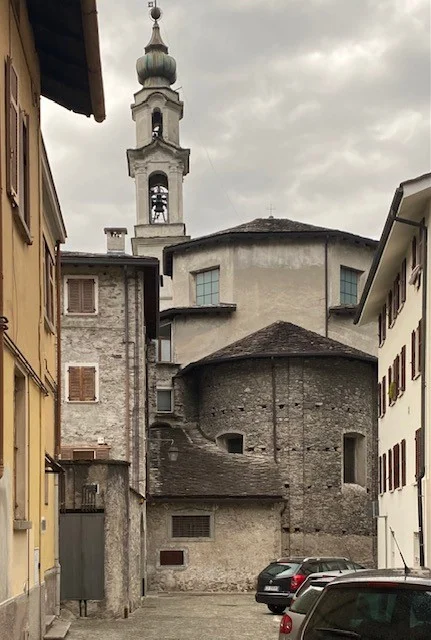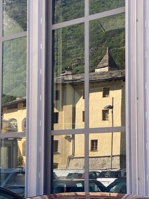 So wandern wir also mit unserem beredten Geigenbauer (auch sein Name verrät Beziehungen zur Schweiz: Ralph Oliver Gschwind-Guanella) durch den Palazzo Vertemate Franchi und vernehmen, wie vor 800 Jahren mediterrane Kultur in ein von Felsen eingeschlossenes enges Tal gelangt ist. Im Jahre 1215 sandten die gibellinischen Herrscher von Como einen gewissen Ruggero Della Porta als Stadtvogt nach Piuro. Er wurde sesshaft und nannte sich im Gedenken an seine Herkunft aus dem südlich von Como gelegenen Vertemate con Minopio künftig Vertemate. Die Familie gehörte in Piuro bald zu den Angesehensten.