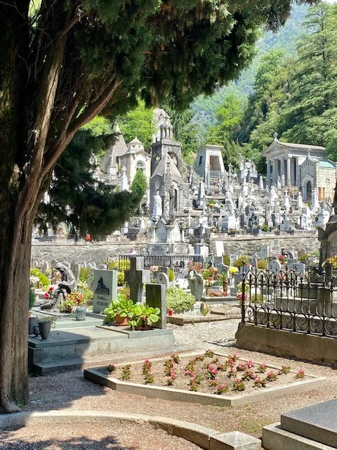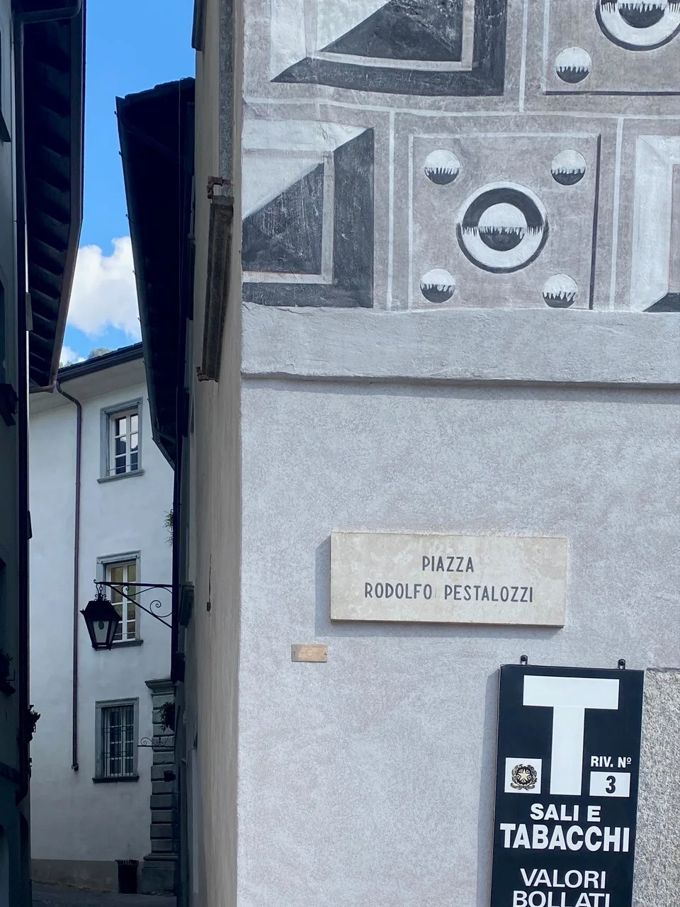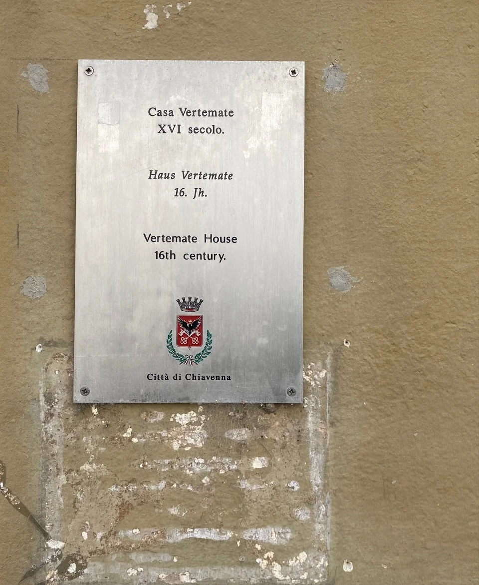 Woher der Reichtum dieser Stadt, fragt sich der neugierige Stadtgänger. Zurück in den engen Gassen entdeckt er, dass es hier nicht nur Paläste für die Toten gibt, sondern auch solche für die Lebendigen. Häuser, Gassen und Plätze tragen Namen, die er hier nicht vermutet hätte: Pestalozzi zum Beispiel, oder Salis. Auch Personen aus neuster Zeit werden auf Tafeln geehrt, so ein gewisser Clyde Geronimi, Walt-Disney-Regisseur, der u. a. den Zeichentrickfilm „101 Dalmatiner“ geschaffen haben soll. Auf einer unscheinbaren silbrigen Tafel, welche lieblos auf ein verunziertes Stück olivgrüner Mauer geschraubt worden ist, liest er einen magischen Namen: Casa Vertemate.