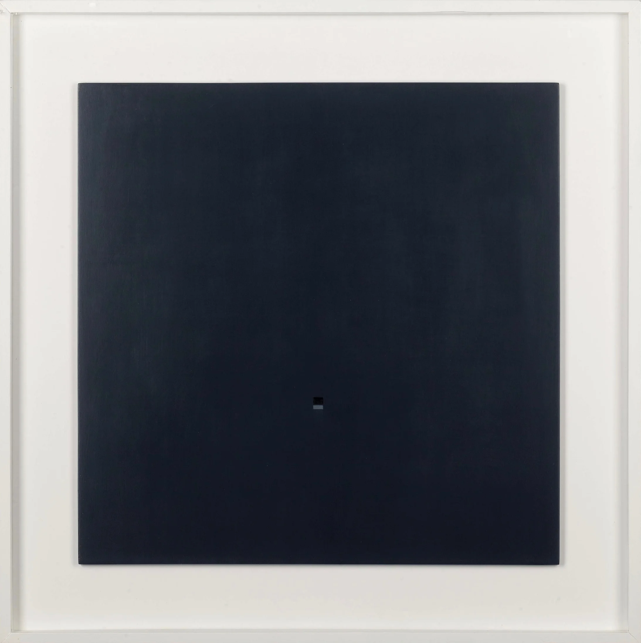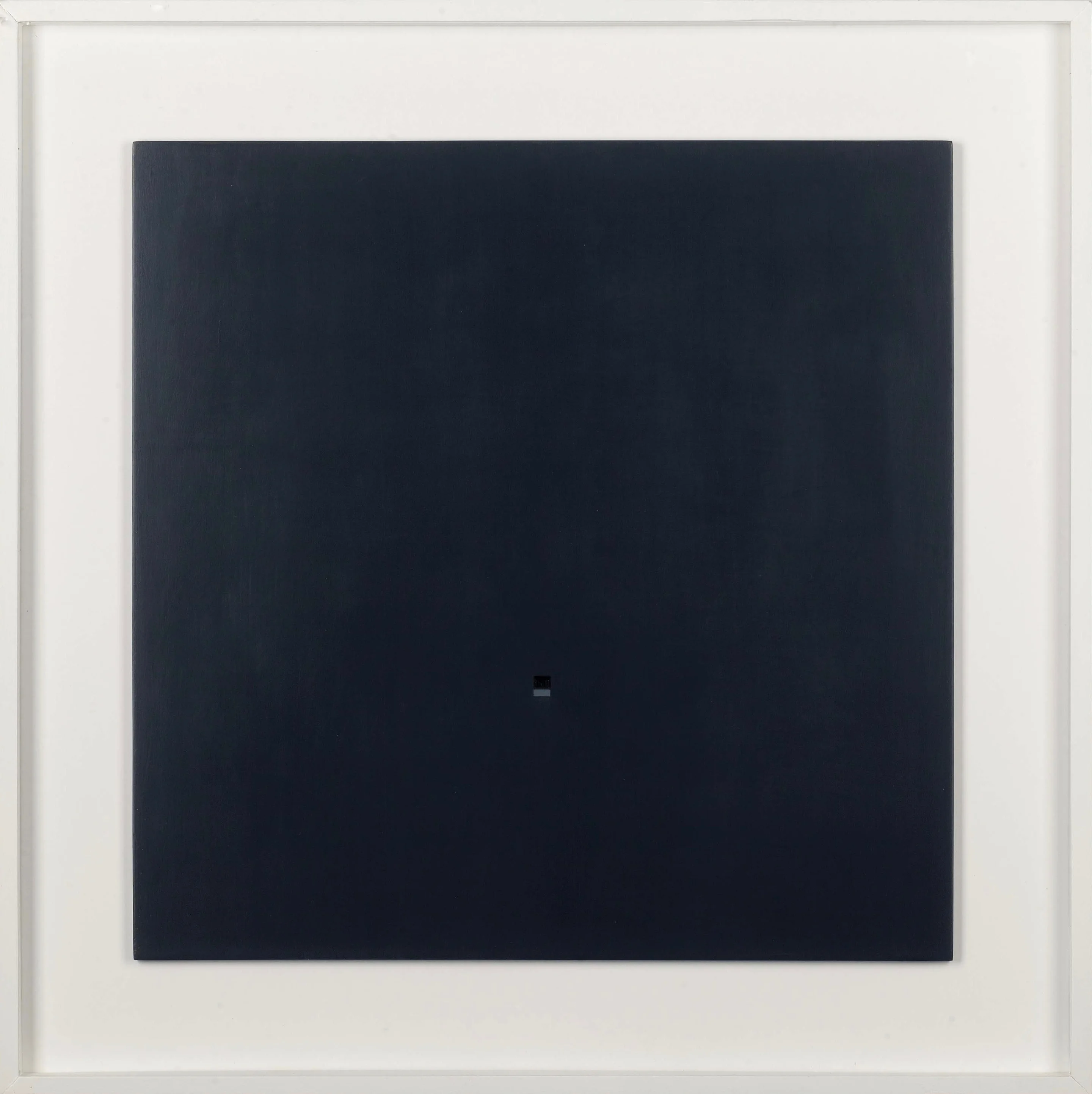 Antonio Calderara: Presenze nel nero, 1969/1970, Ölfarben auf Holz, 54 x 54 cm, Privatsammlung