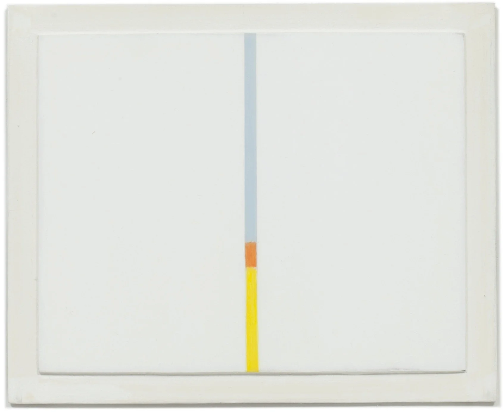 Antonio Calderara: Tensione verticale azzurro, rosso, giallo, 1968, Ölfarben auf Holz, 13 x 16 cm, Privatsammlung, Photographie: Ivan Baschang, Nadja Mair