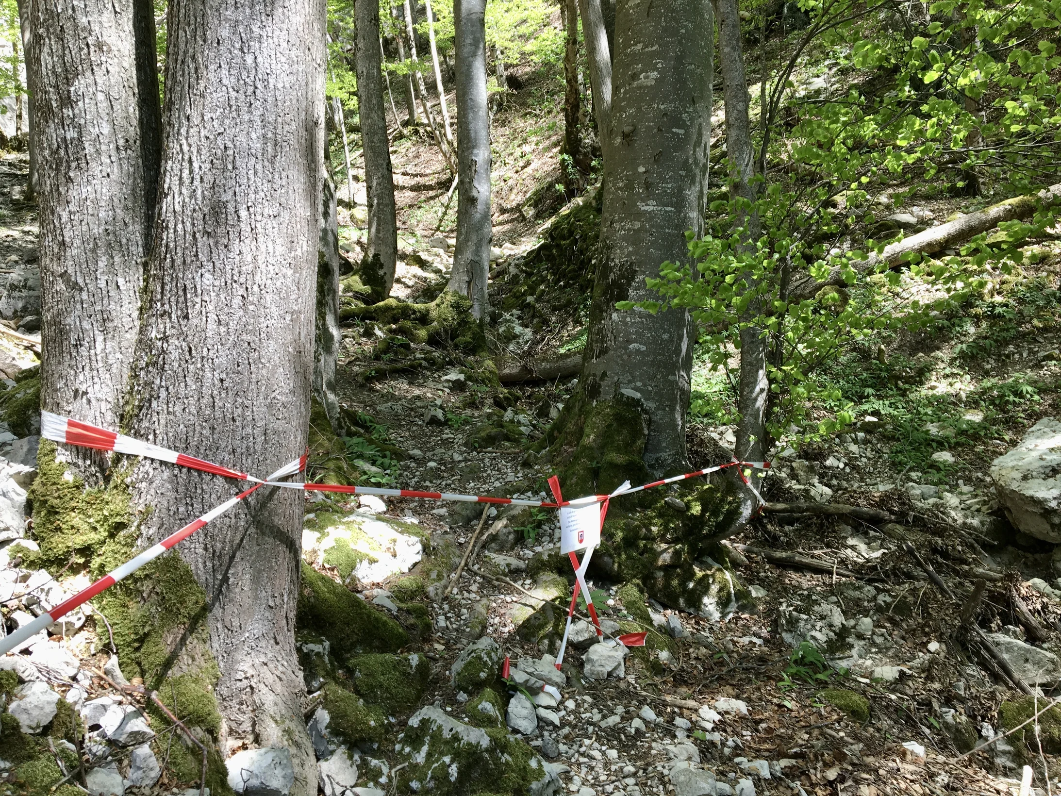 Nun war uns zwar bekannt, dass der Bundesrat Ansammlungen von mehr als fünf Personen bei Androhung einer Ordnungsstrafe untersagt hat. Dass aber auch das Betreten von Wald und Felsen verboten sein sollte, hatten wir bislang nicht vernommen. In Klettergebieten kann man zwar an sonnigen Tagen im Sommer schon hier und da mehrere Seilschaften antreffen, aber wohlgemerkt: Seilschaften. Diese bestehen beim Sportklettern in der Regel aus zwei Personen. Geführte Seilschaften mit fünf Personen habe ich in 50 Jahren alpinistischer Aktivität bisher nur auf Gletscherwanderungen gesehen. Im Wald von Le Paradis wurde aber bisher keine Gletscherbildung festgestellt.