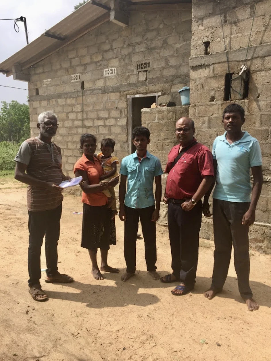 Das Projektteam mit  begünstigter Familie Yoha (links) Sutha (2. von rechts) und Kumanan (rechts aussen)