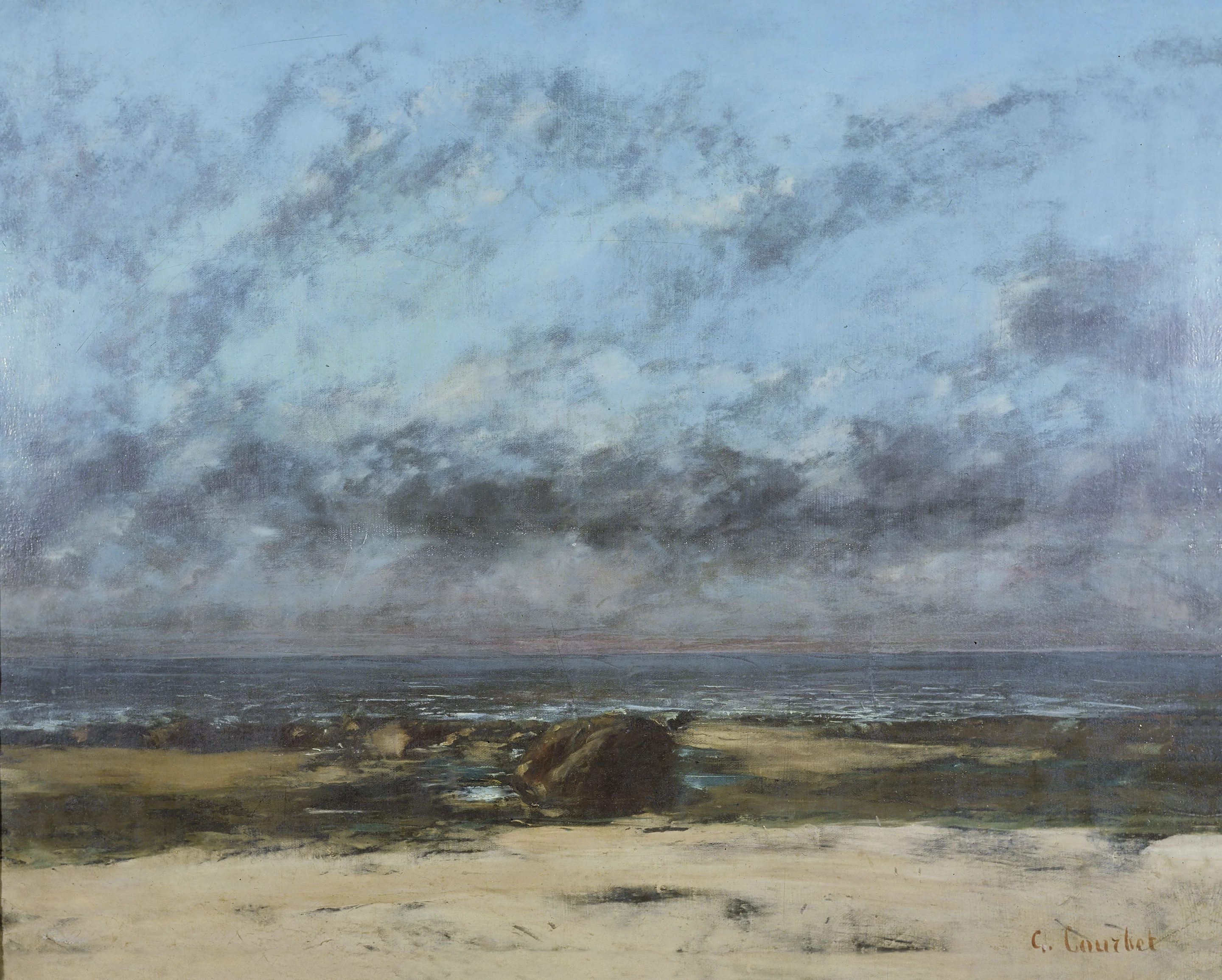 Deutlicher noch als in den Juralandschaften tritt der Vorrang von Form, Farbe und Materialität bei Courbets Küstenlandschaften und Meereswellen zutage. Die Leere eines Strandes kommt der zur Abstraktion tendierenden Bildauffassung quasi naturgemäss entgegen. Atmosphärische Stimmungen und die Bewegtheit von Wogen und Wolken sind Bildthemen, die das Repertoire malerischer Fertigkeiten nicht nur herausfordern, sondern auch erweitern. Courbet sah sich als der Virtuose, der solche Schwierigkeiten meistert und die Malerei zu neuen Ausdruckmöglichkeiten vorantreibt.