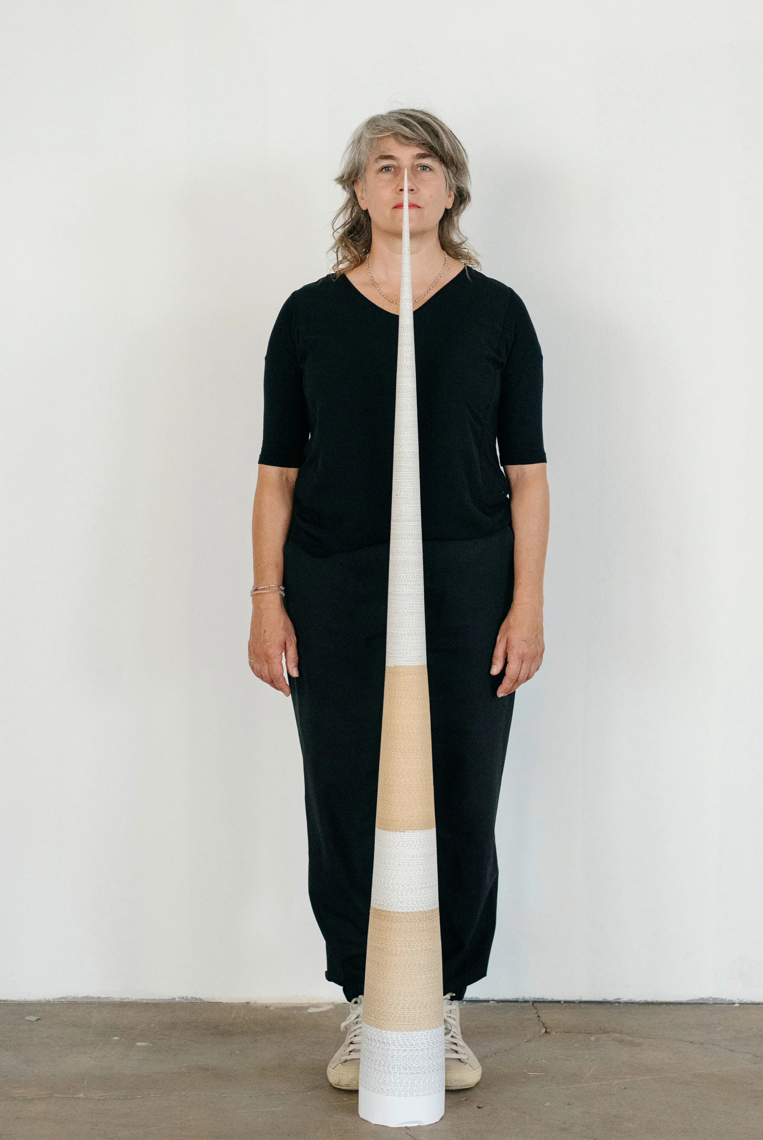 Isabelle Krieg begleitet diese Hauptinstallation der Ausstellung «unendlich endlich» mit weiteren Werken, die etwa ab 2000 entstanden sind, denen meist ein enger Naturbezug eigen ist, und die oft eng mit der Biographie der Künstlerin und ihrer Einbindung in die Dimension der Zeit und mit ihrem Alltag verbunden sind. So notiert sie zum Beispiel seit 1994 ihre bisher gelebten Tage (z.B. am 19. Juli 2018: 17'048 Tage) auf ein Papierband und rolle es fortlaufend zu einem spitzen Kegel auf. Je älter sie wird, desto höher wird der Kegel, und desto kleiner wird sie selbst als natürliche Folge des Alterns.