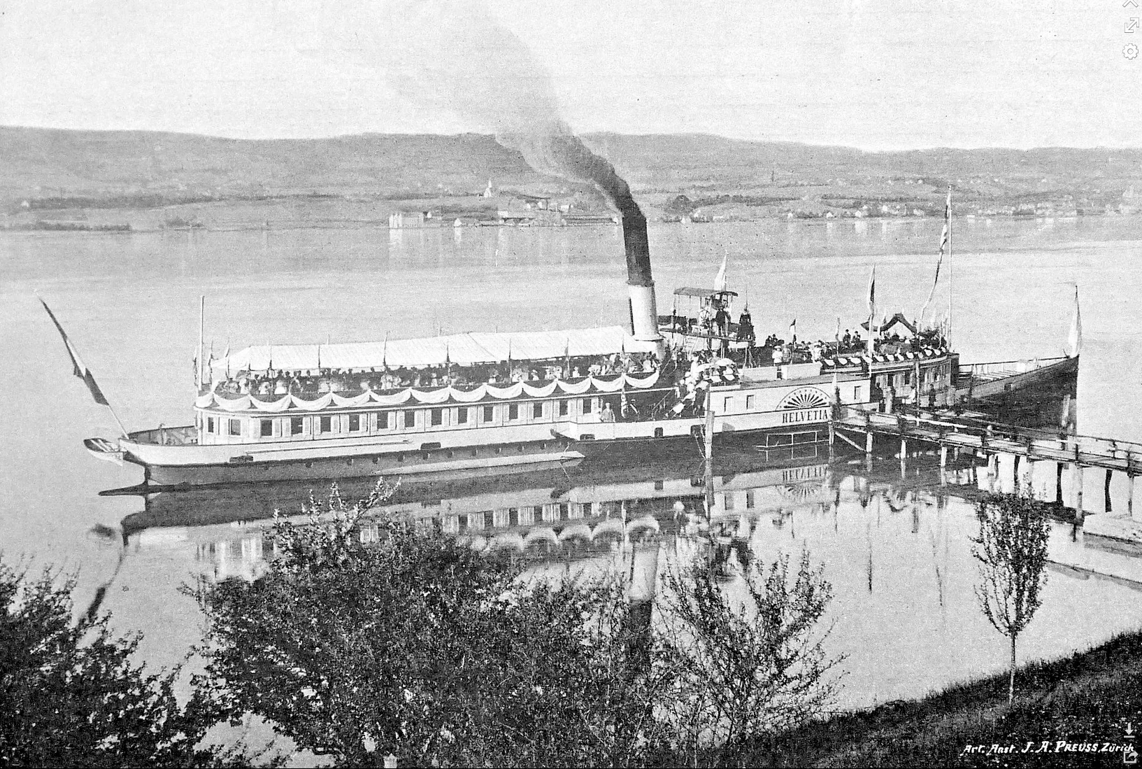 Weil das Eidg. Departement für Verkehr die Betriebsbewilligung für die Helvetia auf das Jahr 1960 begrenzt hatte und die Zürichsee Schiffahrtsgesellschaft (ZSG) nicht plante, das unrentable Schiff zu behalten, wurde die Helvetia vor ihrem Abbruch während der Gartenbauausstellung G59 als Gaststätte verwendet und danach an Coiffeurmeister Schwarz verkauft. Als dieser keine Bewilligung für ein schwimmendes Restaurant erhielt, schleppte die ZSG am 16. November 1961 die Helvetia gratis – hatte man ein schlechtes Gewissen? – in die Kiesgrube der Kibag nach Nuolen.