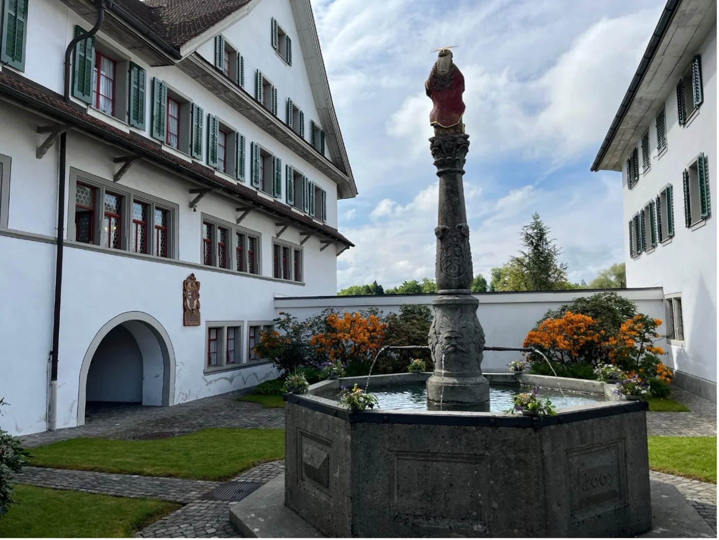 Welcher Kontrast! Dort das laute Treiben einer Mini-Metropole, hier das bedächtige Verweilen in einer abgeschiedenen Idylle, geprägt vom klösterlichen Wirken der Nonnen. Vielleicht so etwas wie ein spiritueller Kontrapunkt zum dynamischen Strom der boomenden Ökonomie und der globalen Finanzindustrie im Raum Zug.