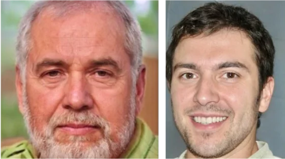 Kennen Sie den Mann links im Bild? Wahrscheinlich nicht. Sein Name ist Martin Aspen. Ein schweizerischer Sicherheitsexperte. Zu Notorietät gelangte er im Jahr der USA-Präsidentenwahl 2020. Er schrieb ein gefälschtes Geheimdienstdokument über Joe Bidens Sohn Hunter und dessen zwielichtige Geschäfte mit China. Der konspirationistische Plot verbreitete sich natürlich viral auf rechten Kanälen. Rudy Giuliani hausierte geradezu geifernd damit. Aber das Dokument stellte sich als Fake heraus, Martin Aspen gibt es nicht. Er ist eine Fake-Person. Sein Foto ist synthetisch, verdankt sich der digitalen Technologie des Deep-Learning: Deepfake.