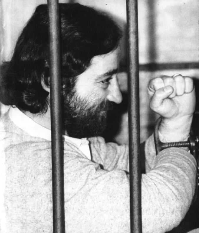 Auch Renato Curcio wird im September 1974 verhaftet. Ihm gelingt 1975 mit Hilfe eines bewaffneten Kommandos der Brigaden die Flucht aus dem Gefängnis Casale Monferrato im Piemont. Am 16. Januar 1976 wird er erneut festgenommen und verbringt 24 Jahre im Gefängnis. Das Bild zeigt ihn während seines Prozesses. (Foto: PD)