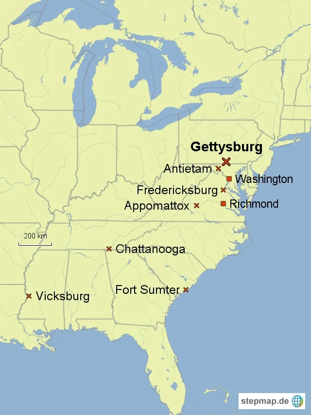 1. – 3. Juli 1863: Gettysburg. Sieg der nördlichen Unionstruppen.