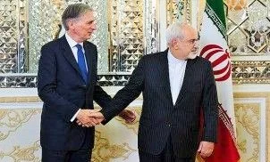 Irans Außenminister M. J. Sarif (rechts) mit seinem britischen Amtskollegen Philipp Hammond in Teheran am 13. August 2015. Für Philipp Hammond war daher auch die Wiedereröffnung der Botschaft in Teheran historisch. Khamenei dagegen, Hauptauslöser der gefährlichen Krise von damals, schweigt noch, er wartet wie immer noch ab, obwohl die Kehrtwende von heute ohne sein Plazet nicht denkbar gewesen wäre.