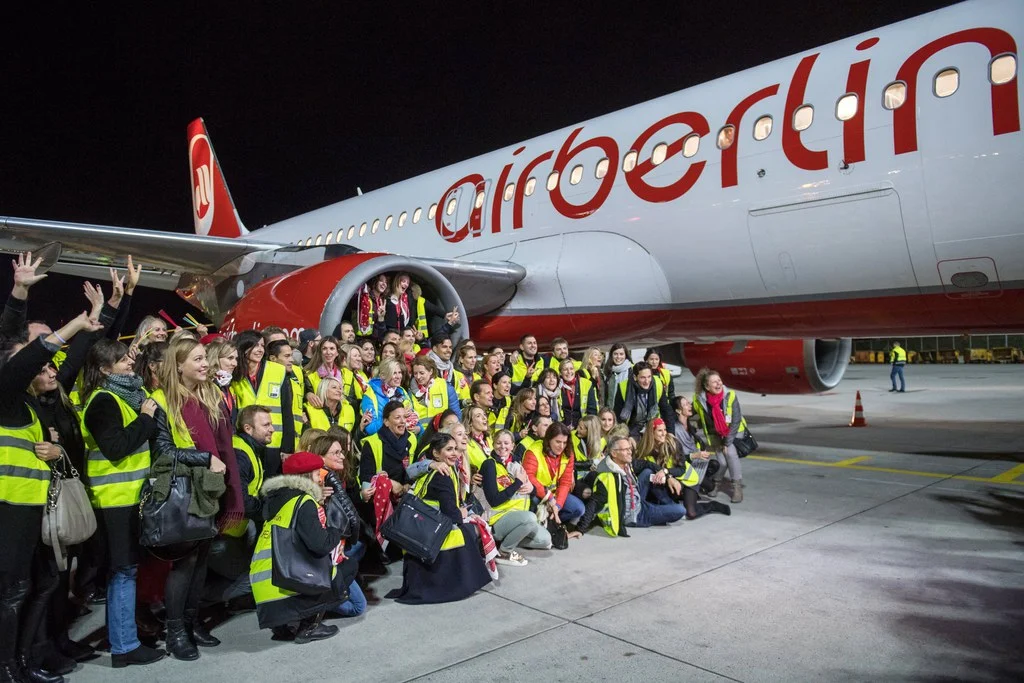 Der letzte Flug führte von München nach Berlin. Der Airbus A320 mit der Flugnummer AB6210 landete mit einer Stunde Verspätung auf dem Berliner Flughafen Tegel. Zum Abschluss flog der Pilot noch eine Ehrenrunde über der Hauptstadt. Seit dem ersten Flug einer Air Berlin-Maschine im Jahr 1979 hat die Gesellschaft nach eigenen Angaben mehr als eine halbe Milliarde Passagiere befördert. Die Lufthansa und Easyjet wollen Teile von Air Berlin übernehmen. Die britische Billig-Fluggesellschaft teilte am Freitag mit, sie wolle von Air Berlin 25 A-320-Maschinen sowie Start- und Landerechte erwerben. Zudem will Easyjet tausend Air Berlin-Mitarbeitern neue Arbeitsplätze anbieten. (Foto: Keystone/EPA/Lennart Preiss)
