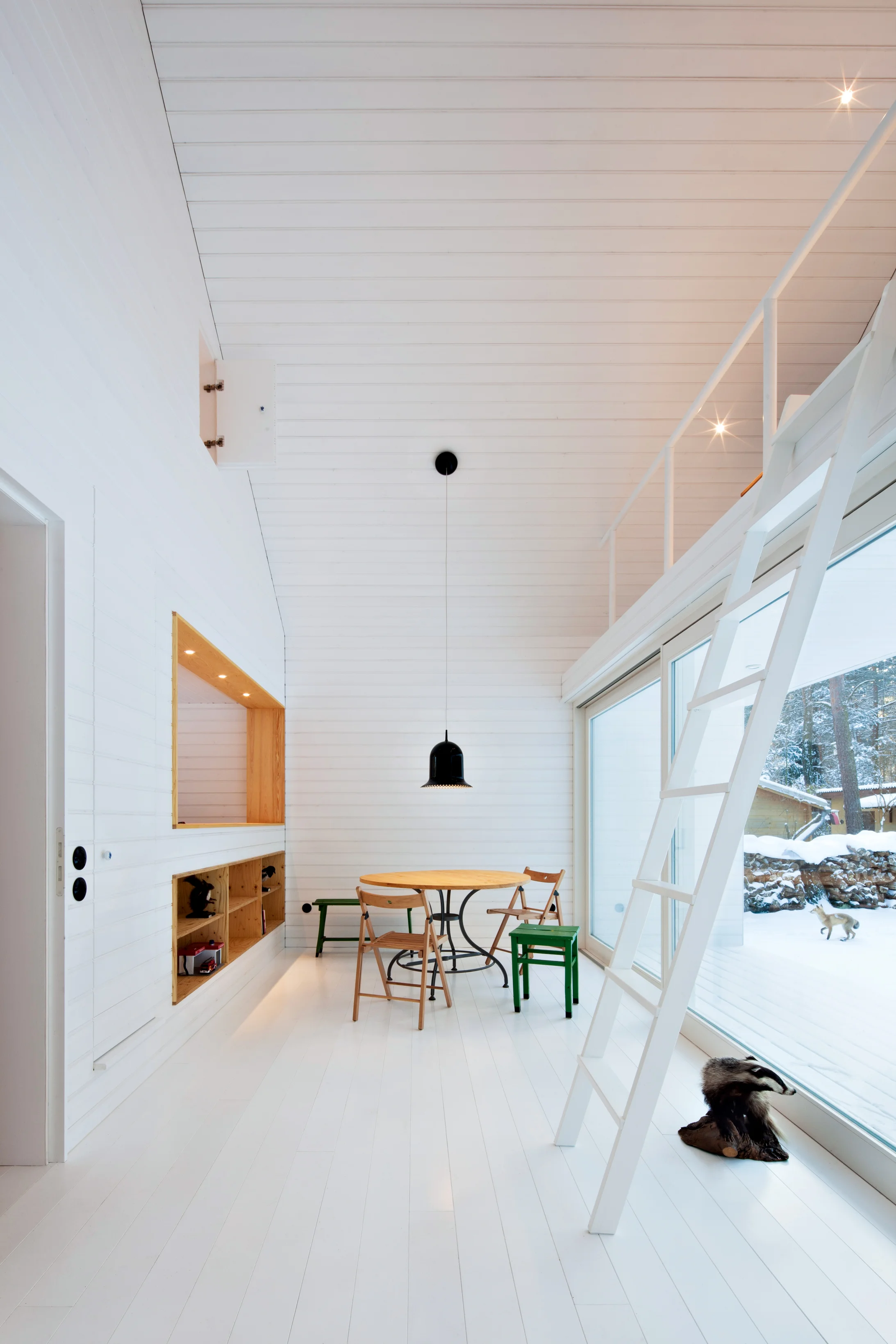 Das Waldhaus ist trotz moderner Architektur einfach geblieben. Geheizt wird es mit einem einzigen Holzofen. Zwar gibt es, im Gegensatz zum Vorgänger, im Haus sanitäre Einrichtungen. Und die Schlafzimmer für Kind und Eltern sind abgetrennt. Aber es ist im guten Sinne des Wortes mehr eine „Behausung“ als ein Haus mit den üblichen Möbeln und Einrichtungen.