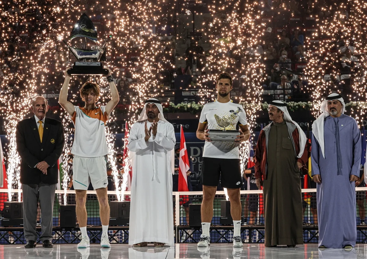 Da ist Andrei Rublew, die Nummer 7 der Tennis-Weltrangliste, der nach einem Sieg beim Turnier – soll man sagen ausgerechnet – in Dubai mit Filzstift auf die Linse einer Übertragungskamera die Worte schreibt: «Kein Krieg, bitte!» Wenig später sollte der tschechische Tennisstar Jiri Vesely diese Geste seines russischen Kollegen wiederholen. Und auch die derzeitige Nummer 1 im Herrentennis, der Russe Daniil Medwedew, liess sich zu dem, wenn auch etwas vorsichtigeren Kommentar verleiten, wonach sein Sport jetzt wahrlich nicht wichtig sei und er am Morgen angesichts des Kriegs in der Ukraine mit grossen Emotionen aufgewacht sei.