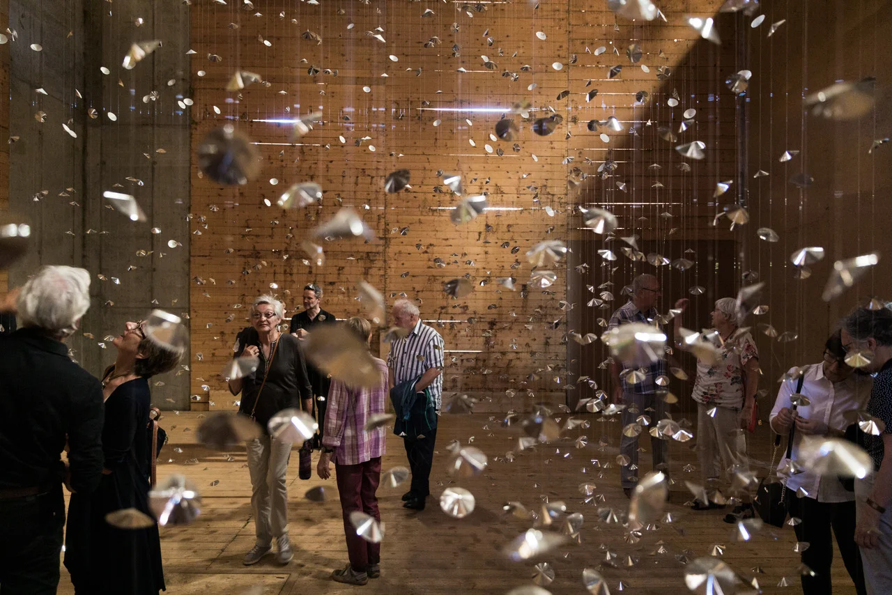 Das Herz des Kulturfestivals ist seit 2007 die mittelalterliche Burg Riom. Auf der Holztribüne liess sich das Publikum in Coronazeiten im Schachbrettmuster auf Abstand setzen, wodurch freilich erneut Einnahmen ausfielen. Das mittelalterliche Schloss hatte Netzer nach einem demokratischen Prozess im Baurecht übernommen. Sein Kulturfestival ist seither eine im Tal verankerte Institution. Die elegante zum Kleintheater ausgebaute Scheune (Clavadeira) durfte diesen Sommer coronabedingt nicht bespielt werden. Kurzerhand wurde zusätzlich die grosse luftige Lorenz-Scheune innen hell gestrichen und mit einer Zugangstreppe versehen; zuvor hatte sie als Lagerraum gedient. Als ob der schlichte Raum schon immer ein Kulturzentrum gewesen wäre, fanden darin die traditionsreichen rätoromanischen Heimwehlieder, ein herrlicher Britten, romantische Männerchorwerke gute Akustik. In dieser zweiten Origenscheune war letzten Sommer die lichtvoll hängende, bezaubernd im Windhauch spielende Installation der Künstlerin Irene Gazzillo ausgestellt.