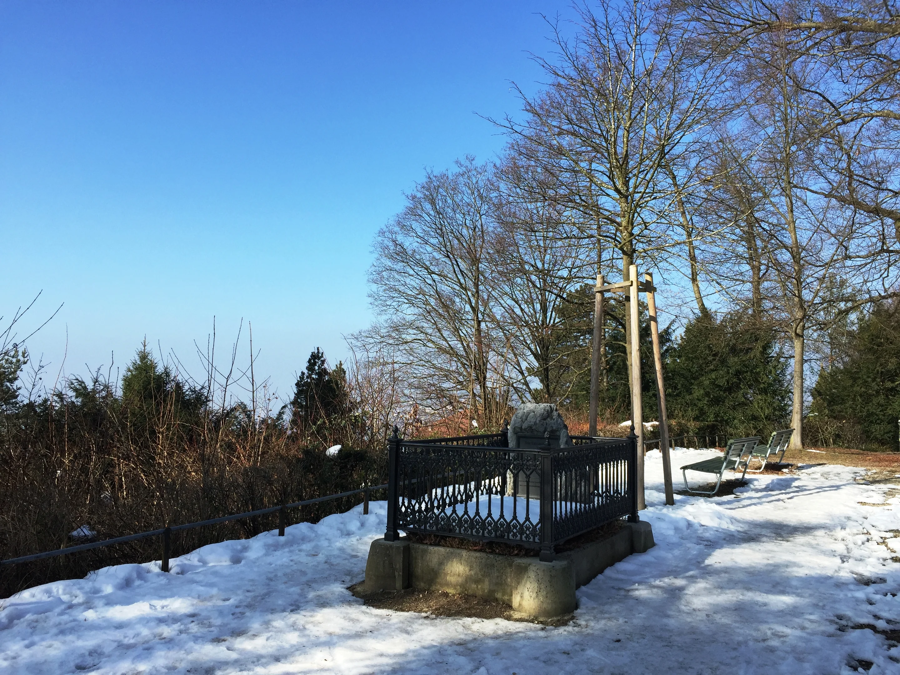 Jetzt hat die Stadt Zürich das Grab restauriert. Das gusseiserne Gitter wurde vom Rost befreit und verzinkt. Der Sandsteinsockel wurde ausgebessert. Das jetzt schneebedeckte Grab mit dem Grabstein und einer eisernen Plakette behält seine schlichte Ausstrahlung.