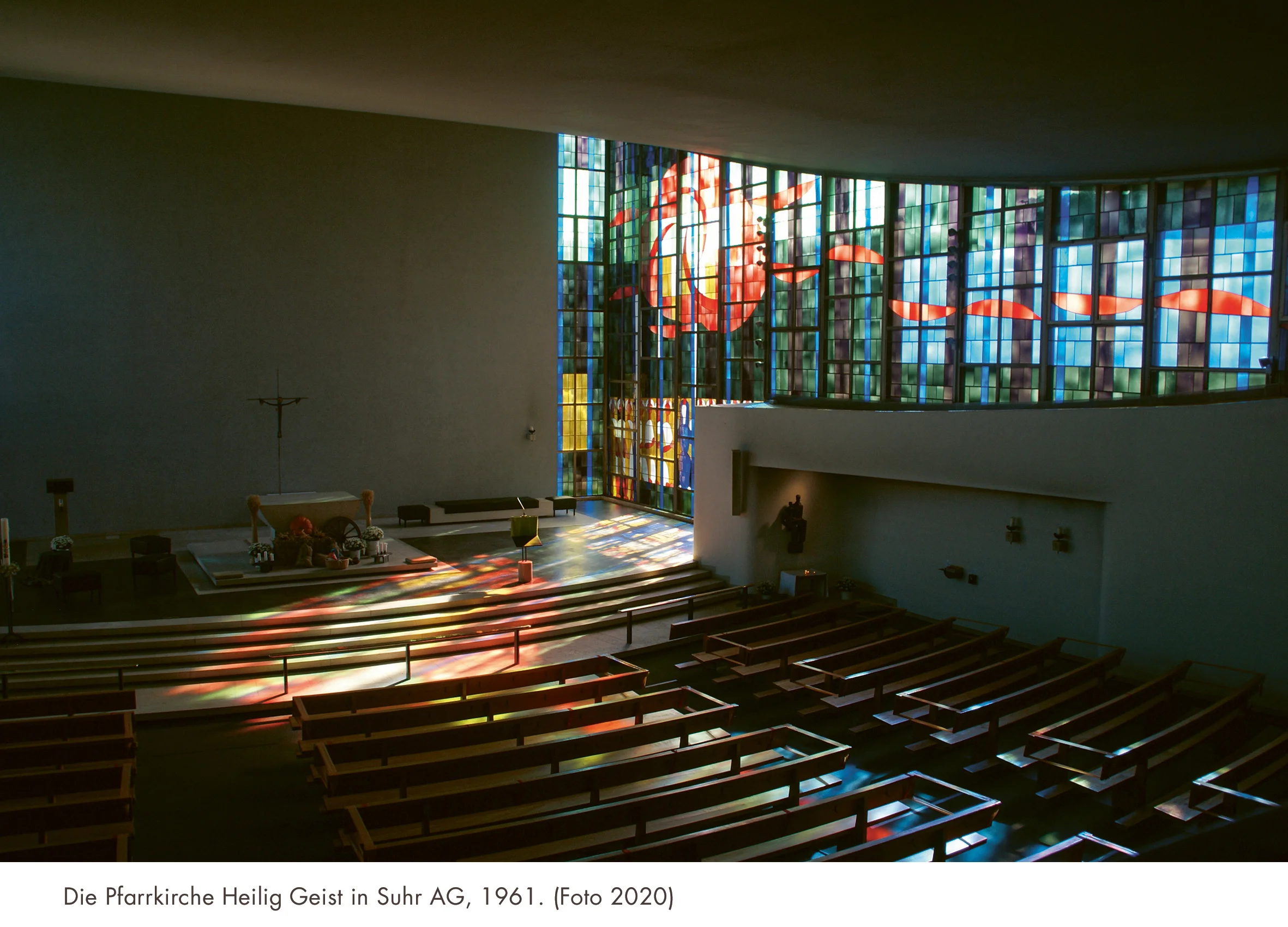 Gemeint ist die Pfarrkirche Bruder Klaus von Oberwil b. Zug, erbaut 1953–1956 und ausgeschmückt mit Gehrs Gemälden. Mit diesem ungewohnten Bau schafft Hanns A. Brütsch – in der Architektengemeinschaft mit Alois Stadler – einen Meilenstein in der sakralen Architektur der Schweiz. Bereits Jahre vor dem Zweiten Vatikanischen Konzil (1962–1965) realisiert er mit diesem Schlüsselwerk neue liturgische Praktiken. Mit dem „Zelt Gottes“, so nennt Brütsch sein Wettbewerbsprojekt, betont er – räumlich – die Gemeinschaft von Priester und Gläubigen. Sein Kirchenraum gehört zu den fortschrittlichsten in ganz Europa. Der Bau wird international rasch bekannt – und damit auch Hanns A. Brütsch.