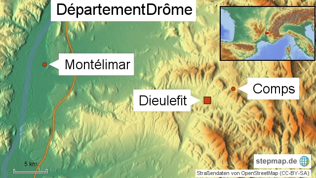 Das Hochplateau in 700 Metern Höhe oberhalb von Dieulefit ist karges Land, wo Getreide auf steinigen Feldern nur spärlich wächst, Krüppeleichen und Esskastanien die Hügel bedecken, Ziegenherden auf Brachland zu Hause sind und ein einziger Bauer noch Fleischtierhaltung betreibt. Der Blick reicht von hier über dutzende Kilometer nach Norden bis zum Vercors und nach Westen über das Rhônetal hinaus bis zu den Höhenzügen der Ardèche.