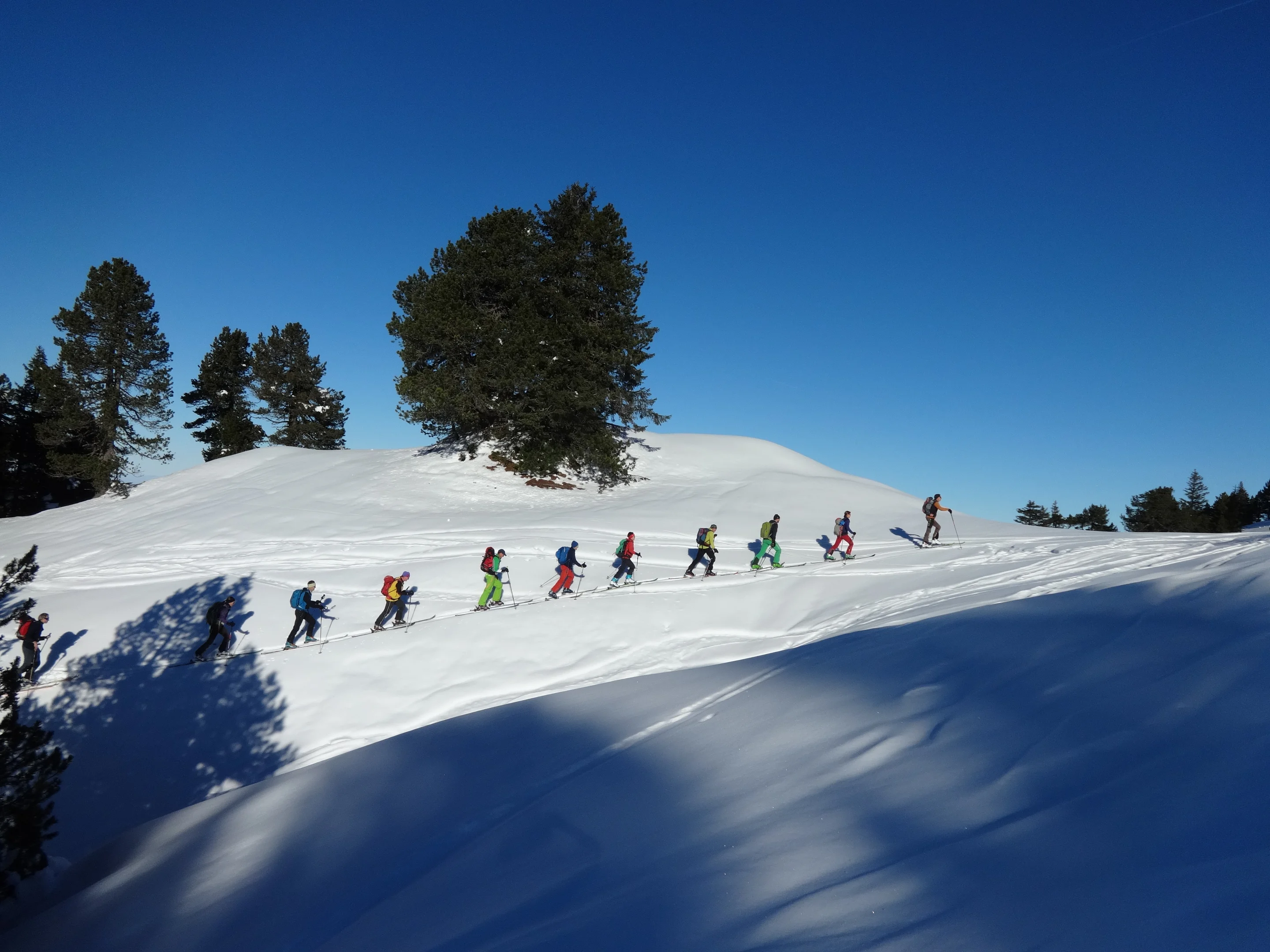 „Es ist ein riesiger Energiespender“, sagt Tourenleiterin Christine Meier. „Die Winterlandschaft erleben. Wenn ich das nicht hätte, müsste ich etwas anderes finden, das mir die Energie und die Kraft gibt, alles im Alltag zu bestehen, was auf einen zukommt.“