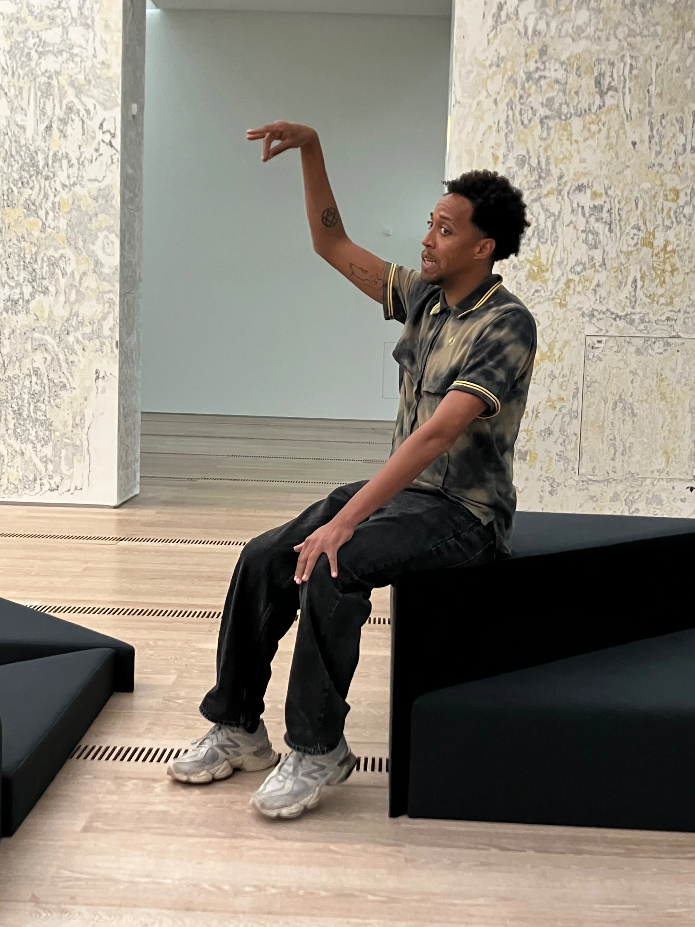 Einiges überrascht in der Sommerausstellung der Fondation Beyeler. Erstmals bespielt die eigene Sammlung – ergänzt durch Leihgaben und neue, ortsspezifische Installationen – alle Räume des Hauses. Die altbekannten Werke der hauseigenen Sammlung haben aber diesmal keine Stammplätze, sondern wechseln im Verlauf der Ausstellungsdauer immer wieder ihre Plätze. Der übliche Glanz der hart ins Scheinwerferlicht genommenen Meisterwerke fehlt. Die Atmosphäre ist teils locker und verspielt wie in Sehgals erwähnter Installation, teils magisch-dunkel wie im Raum mit einer schwarz-in-schwarz gehaltenen Chirico-Variation des 1974 geborenen Rumänen Victor Man oder wie bei der Grossprojektion des dunklen Videos des Amerikaners Arthur Jafa (*1960).