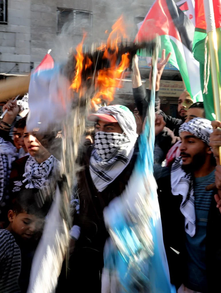 Bei einer Anti-Trump-Manifestation in der jordanischen Hauptstadt Amman verbrennen Demonstranten eine israelische Flagge. Bei Zusammenstössen mit israelischen Sicherheitskräften im Westjordanland, in Jerusalem und Gaza wurden mehr als 760 Palästinenser verletzt, zwei wurden im Gaza-Streifen getötet. In Hebron und Bethlehem setzten die israelischen Sicherheitskräfte Gummigeschosse und Tränengas ein.